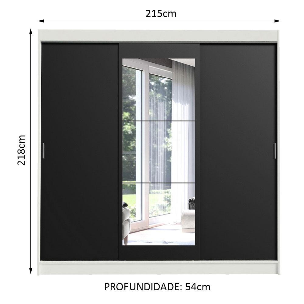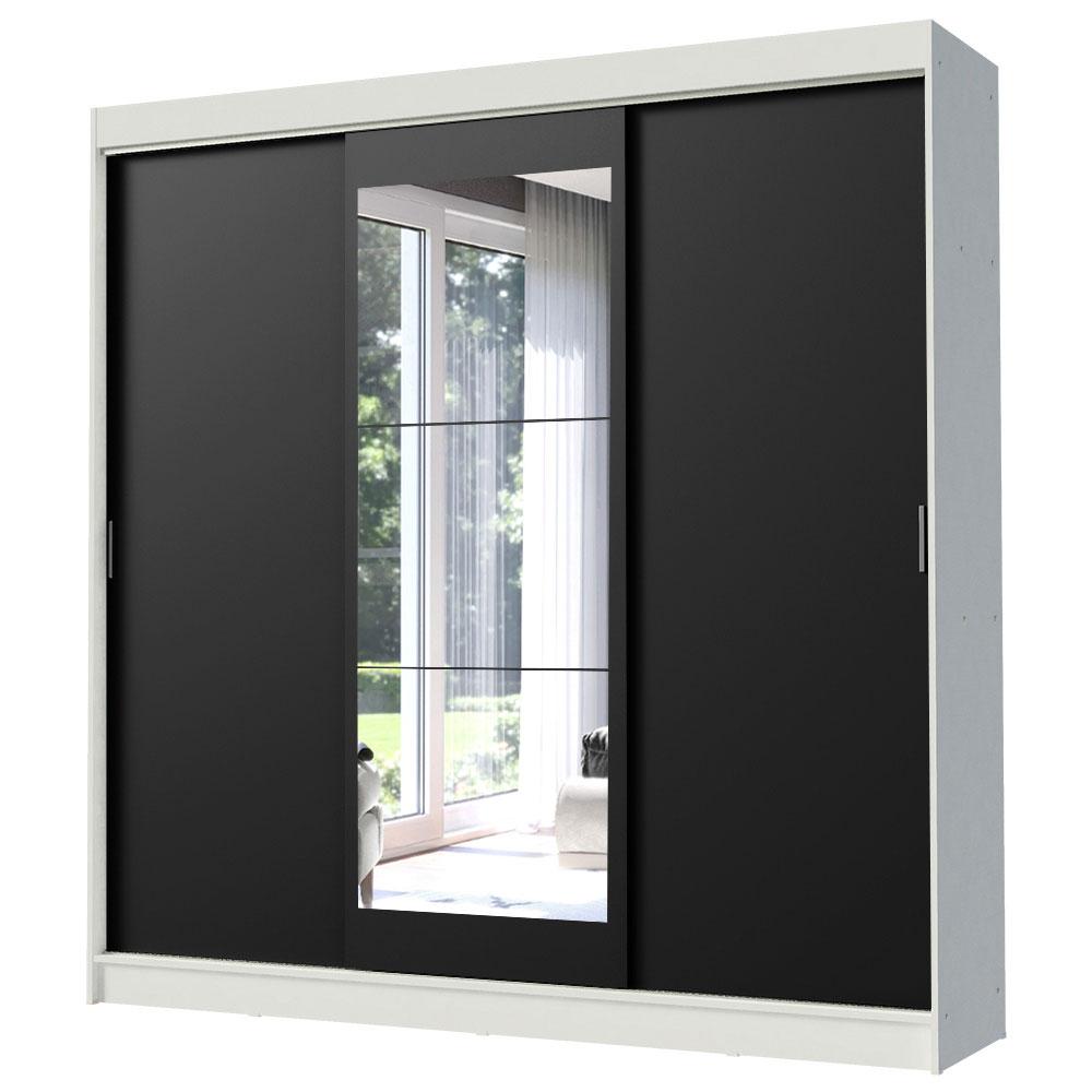 Guarda-Roupa Casal Madesa Istambul 3 Portas de Correr com Espelho 3 Gavetas - Branco/Preto