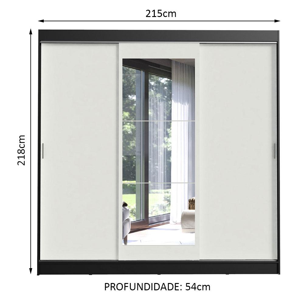 Guarda-Roupa Casal Madesa Istambul 3 Portas de Correr com Espelho 3 Gavetas - Preto/Branco