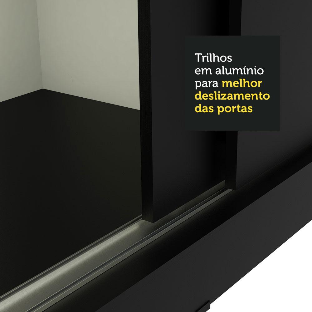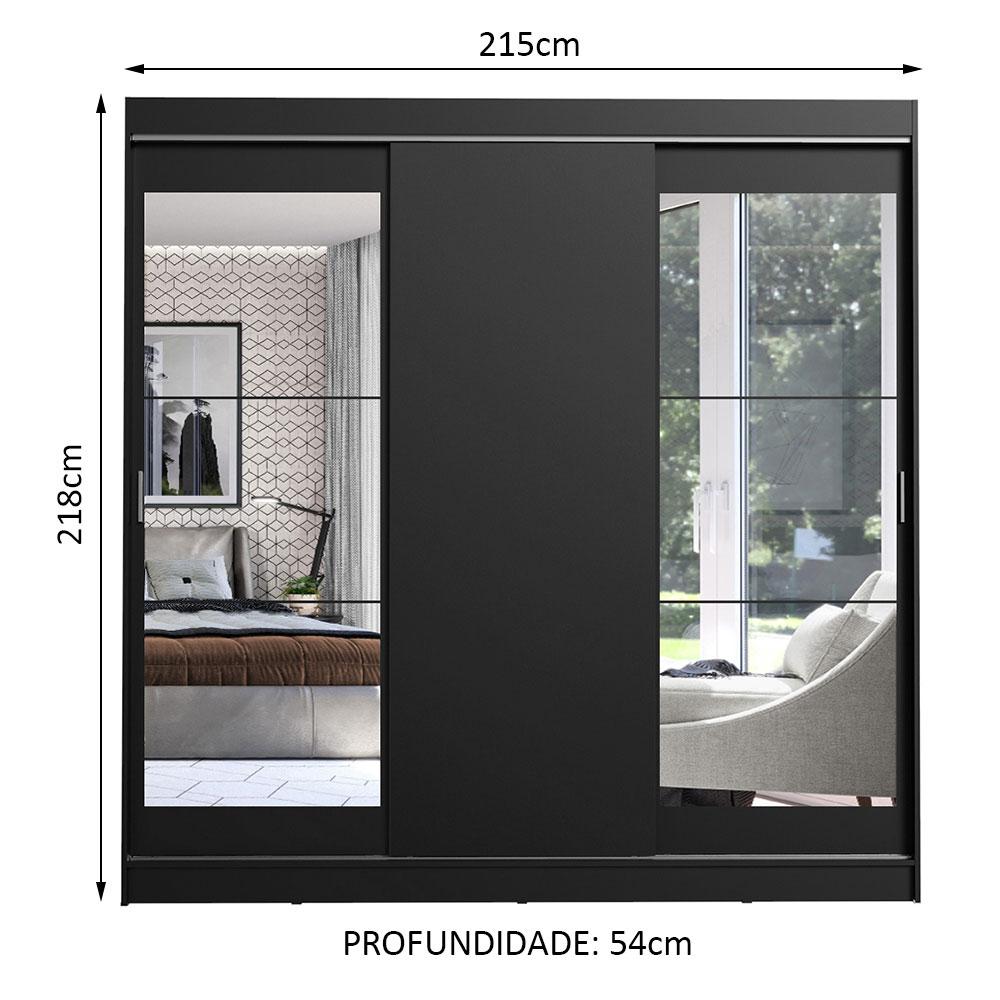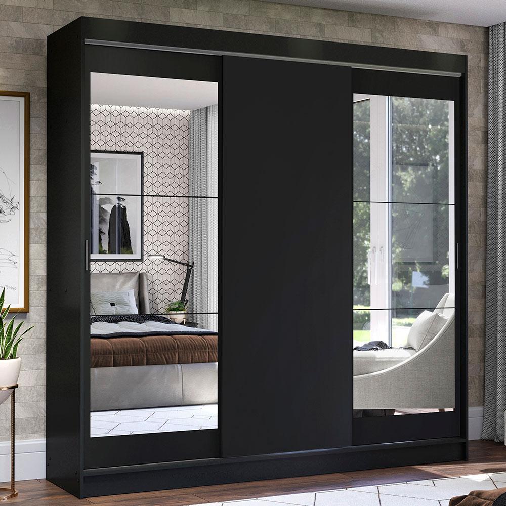 Guarda-Roupa Casal Madesa Istambul 3 Portas de Correr com Espelhos 3 Gavetas - Preto