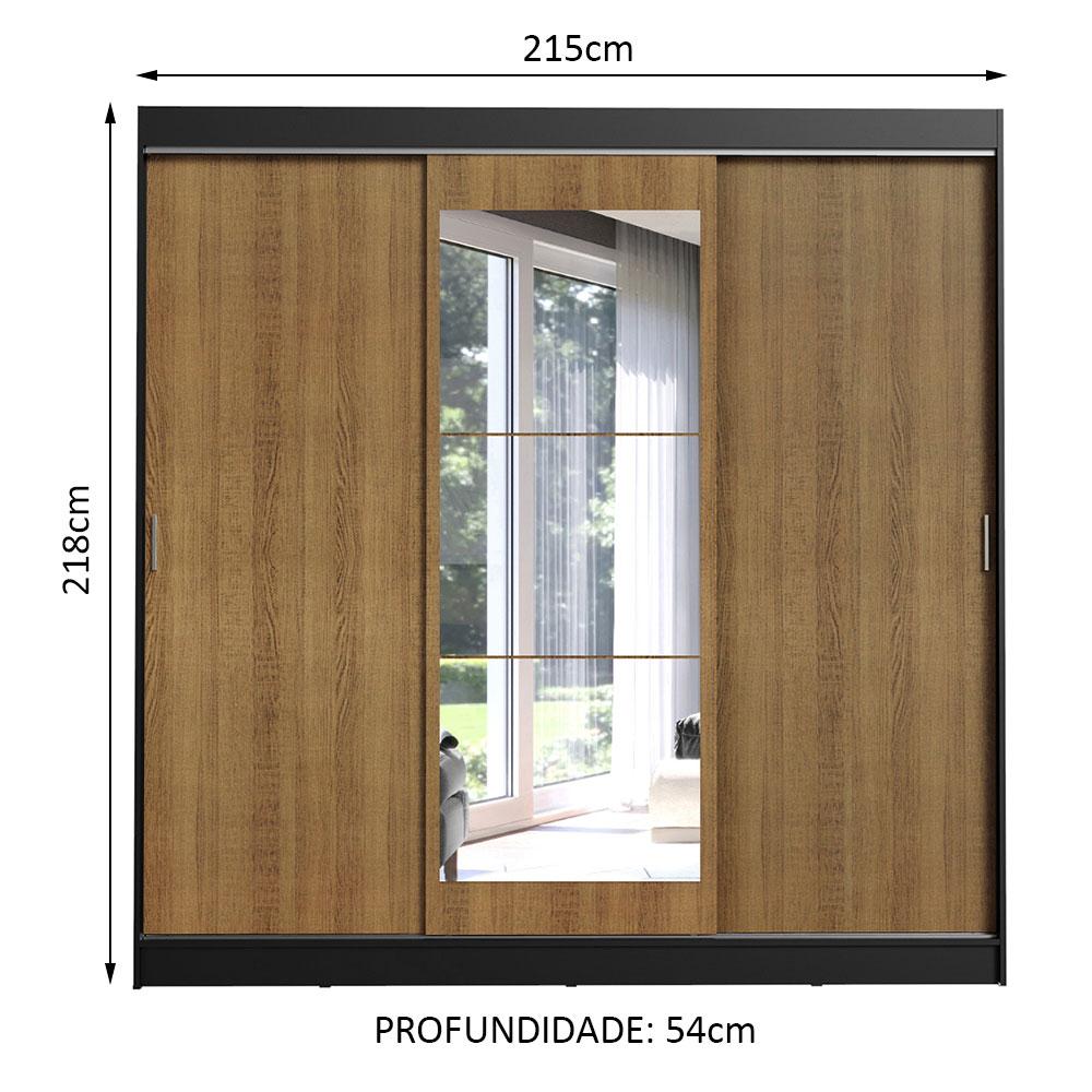 Guarda-Roupa Casal Madesa Istambul 3 Portas de Correr com Espelho 3 Gavetas - Preto/Rustic