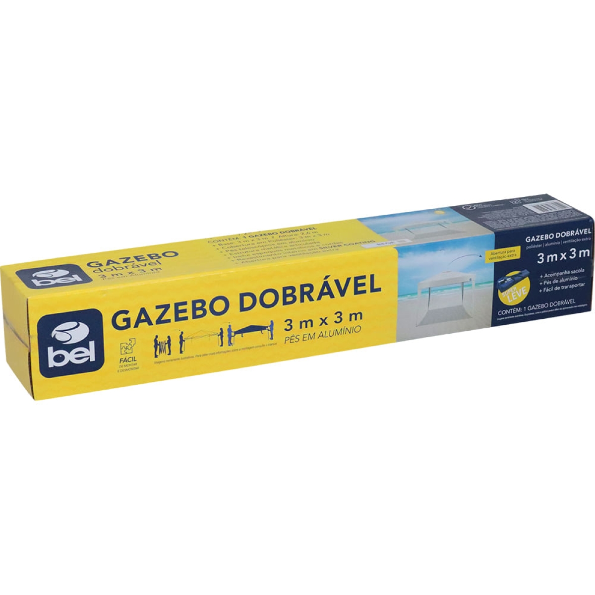 Gazebo Dobrável 3x3m Bel: Sombra e Proteção Instantânea Desfrute de momentos inesquecíveis ao ar livre com o Gazebo Dobrável Bel! Ideal para quem busca praticidade, conforto e proteção em qualquer lugar, este gazebo é perfeito para praias, piqueniques, jardins, piscinas, campings e eventos. Sua montagem rápida e fácil, combinada com uma estrutura robusta em alumínio, garante segurança e durabilidade. A cobertura em poliéster com revestimento prateado (Silver Coating) oferece excelente proteção contra os raios solares, mantendo você e sua família confortáveis mesmo nos dias mais quentes. O sistema de escoamento de água nas laterais proporciona resistência em dias de chuva leve, evitando surpresas desagradáveis. Com ventilação superior otimizada, o gazebo garante uma circulação de ar agradável, e os tirantes e estacas metálicas asseguram uma fixação firme ao solo. Leve e compacto, o Gazebo Dobrável Bel acompanha uma bolsa para transporte, facilitando o armazenamento e o transporte para onde você for. Invista em momentos de lazer sem preocupações com o Gazebo Bel! Especificações Altura: 2,60 m Base: 3,00 m x 3,00 m Material da Cobertura: Poliéster com Revestimento Prateado (Silver Coating) Estrutura: Alumínio articulado com pés telescópicos Itens Inclusos Gazebo Dobrável 3x3m Bel Bolsa para Transporte Tirantes Estacas Metálicas Perguntas Frequentes (FAQ) Pergunta: Qual o material da estrutura do gazebo?Resposta: A estrutura do gazebo é feita em alumínio articulado com pés telescópicos, garantindo leveza, resistência e durabilidade. Pergunta: O gazebo oferece proteção contra chuva?Resposta: Sim, a cobertura em poliéster com revestimento prateado e o sistema de escoamento de água nas laterais oferecem proteção contra chuva leve. Pergunta: É fácil montar o gazebo?Resposta: Sim, o gazebo possui montagem rápida e fácil, sem a necessidade de ferramentas complexas. Pergunta: O gazebo acompanha bolsa para transporte?Resposta: Sim, o gazebo acompanha uma bolsa para transporte, facilitando o armazenamento e o transporte. Pergunta: Qual a garantia do produto?Resposta: Garantia legal: 90 dias