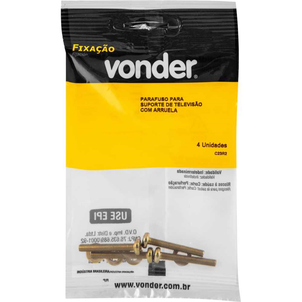 Parafuso Vonder M6 para Suporte de TV 6 x 35 mm com Arruela 4 Peças - Vonder OficialO Parafuso Vonder M6 para Suporte de TV é a solução confiável e segura para quem busca firmeza na instalação de televisores em painéis. Fabricado em aço carbono de alta resistência, esse conjunto se destaca pela robustez e pela durabilidade, atendendo às exigências de fixações que exigem precisão e segurança. O acabamento zincado é um diferencial essencial, pois protege as peças contra oxidação, aumentando significativamente sua vida útil mesmo em ambientes mais úmidos ou sujeitos à ação do tempo.Com diâmetro de 6 mm e comprimento de 35 mm, o parafuso apresenta dimensões ideais para proporcionar uma fixação firme e equilibrada. Isso garante não só a estabilidade do aparelho no painel, mas também tranquilidade ao usuário, evitando riscos de soltura ou desalinhamento ao longo do tempo. Acompanha ainda quatro arruelas, que têm papel fundamental na distribuição da pressão durante o aperto, evitando danos à superfície e garantindo um acabamento mais profissional à instalação.Especificações- Material (tipo/composição): Aço carbono- Acabamento: Zincado- Diâmetro: 6 mm- Comprimento do parafuso: 35 mm- Massa aproximada (peso) (kg): 0,070 kgItens inclusos- 4 parafusos e 4 arruelasGarantia- 03 meses com o fabricante