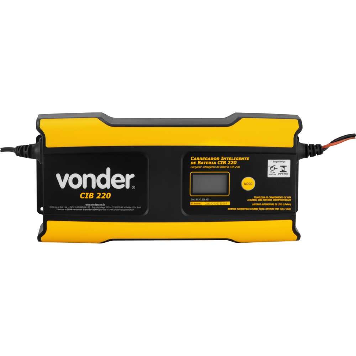 Carregador Inteligente Vonder CIB220: Carregue e Preserve a Vida Útil da Sua Bateria Mantenha suas baterias sempre prontas para uso com o Carregador Inteligente Vonder CIB220. Projetado para baterias de 30Ah a 200Ah, 6V e 12V, este carregador oferece carregamento seguro, eficiente e prolonga a vida útil da sua bateria. Ideal para motocicletas, automóveis e outros veículos ou equipamentos, ele é compatível com baterias chumbo ácida convencional, VRLA (AGM e Gel) e até mesmo baterias de Fosfato de Ferro de Lítio (LiFePO4) de 12V. Sua tecnologia com microprocessador otimiza o processo de carregamento, enquanto as proteções contra curto-circuito, polaridade invertida e sobreaquecimento garantem a segurança do seu equipamento e da bateria. Além disso, o CIB220 possui função de carregamento em baixas temperaturas (abaixo de 5°C) e sistema de conservação de carga, realizando o carregamento automático sempre que necessário. Acompanha extensões para tomada 12V, garras tipo jacaré e para motos, ampliando suas possibilidades de uso. Especificações Modelo: CIB 0220 Capacidade de carga da bateria: 30 Ah - 200 Ah Tensão de saída: 6 V - 12 V DC Corrente de carga: 2 A e 10 A Corrente de entrada: 1,6 A Potência: 150 W Comprimento do cabo da garra: 1,15 m Comprimento do cordão elétrico: 1,5 m Dimensões (C x L x A): 256 mm x 123 mm x 66 mm Tensão: 220 V~ Frequência: 50 Hz / 60 Hz Massa aproximada: 1,04 kg Itens Inclusos 1 Carregador de bateria Vonder CIB220 1 Extensão tomada 12 V macho 1 Extensão com garras tipo jacaré 1 Extensão para motos Perguntas Frequentes (FAQ) Pergunta: Qual o tipo de bateria compatível com este carregador?Resposta: Este carregador é compatível com baterias chumbo ácida convencional, VRLA (AGM e Gel) e Fosfato de Ferro de Lítio (LiFePO4) de 12V até 200Ah. Pergunta: O carregador possui proteção contra sobrecarga?Resposta: Sim, o carregador possui proteção contra curto-circuito, polaridade invertida e sobreaquecimento, garantindo a segurança da bateria e do equipamento. Pergunta: Qual a garantia do produto?Resposta: Garantia legal: 6 meses