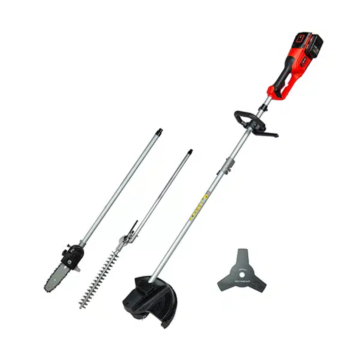 Roçadeira Multifuncional a Bateria Toyama TBT18+18MT-K: Liberdade e Potência para Seu JardimDescubra a liberdade de cuidar do seu jardim com a Roçadeira Multifuncional a Bateria Toyama TBT18+18MT-K, a solução completa para quem busca eficiência, versatilidade e praticidade sem os incômodos dos fios e combustíveis. Este equipamento inovador é projetado para transformar a manutenção de áreas verdes, combinando quatro funções essenciais em um único aparelho potente e ergonômico. Com o seu motor brushless de alta eficiência energética e velocidade fixa, a TBT18+18MT-K adapta-se perfeitamente a diversas tarefas, desde o corte preciso da grama até a poda de galhos e a modelagem de cercas vivas.Na função roçadeira, você conta com um sistema duplo: uma lâmina metálica de alta eficiência para trabalhos mais robustos e um carretel de fio de nylon com sistema 'bate e libera', ideal para acabamentos delicados e diferentes tipos de gramado. Para galhos e podas de árvores, a função motopoda oferece alcance e precisão. Já o podador de cerca viva garante a modelagem perfeita de arbustos, cercas e trepadeiras. Pensando no seu conforto, a Toyama equipou este modelo com alça tipo D, empunhadura emborrachada, cinto lateral de apoio e um baixo nível de ruído, tornando a experiência de uso muito mais agradável. Seu eixo bipartido simplifica o transporte e o armazenamento, otimizando seu espaço. Faça parte da família ONE ALL BATTERY: este kit já inclui duas baterias Toyama 18V de 4Ah e um carregador duplo de 2.5Ah, que são compatíveis e podem ser compartilhados com outros equipamentos Toyama 18V ou 18V+18V. Invista na Roçadeira Multifuncional Toyama TBT18+18MT-K e tenha um jardim impecável com total autonomia.Especificações Modelo: TBT18+18MT-K Tipo: Roçadeira Multifuncional a Bateria Motor: Brushless, alta eficiência energética, velocidade fixa Alimentação: 2 baterias Toyama 18V (mesma amperagem) Funções de Corte: Roçadeira (lâmina metálica, carretel de fio de nylon bate e libera), Motopoda (podador de altura para galhos), Podador de Cerca Viva Design e Conforto: Alça tipo D, Empunhadura emborrachada, Cinto lateral de apoio, Baixo nível de ruído, Eixo bipartido (facilita transporte e armazenamento) Compatibilidade de Bateria: Família ONE ALL BATTERY (compartilhável com outros equipamentos Toyama 18V ou 18V+18V)Itens Inclusos 1 Roçadeira Multifuncional a Bateria Toyama TBT18+18MT-K 2 Baterias Toyama 18V 4Ah 1 Carregador duplo 2.5Ah 1 Lâmina metálica de corte 1 Carretel de fio de nylon (função bate e libera) 1 Acessório Motopoda (podador de altura) 1 Acessório Podador de Cerca Viva 1 Cinto lateral de apoioPerguntas Frequentes (FAQ) Pergunta: Qual a fonte de alimentação da Roçadeira Multifuncional Toyama?Resposta: Ela utiliza duas baterias Toyama 18V (da mesma amperagem) e acompanha duas baterias de 4Ah e um carregador duplo. Pergunta: Quais são as principais funções desta Roçadeira?Resposta: Este equipamento é multifuncional, oferecendo as funções de roçadeira (com lâmina e fio de nylon), motopoda para corte de galhos e podador de cerca viva. Pergunta: As baterias podem ser usadas em outros equipamentos?Resposta: Sim, as baterias fazem parte da família ONE ALL BATTERY da Toyama e são compatíveis com outros equipamentos Toyama 18V ou 18V+18V. Pergunta: Este equipamento é fácil de transportar e armazenar?Resposta: Sim, ele possui um eixo bipartido que proporciona maior facilidade no transporte e no armazenamento.