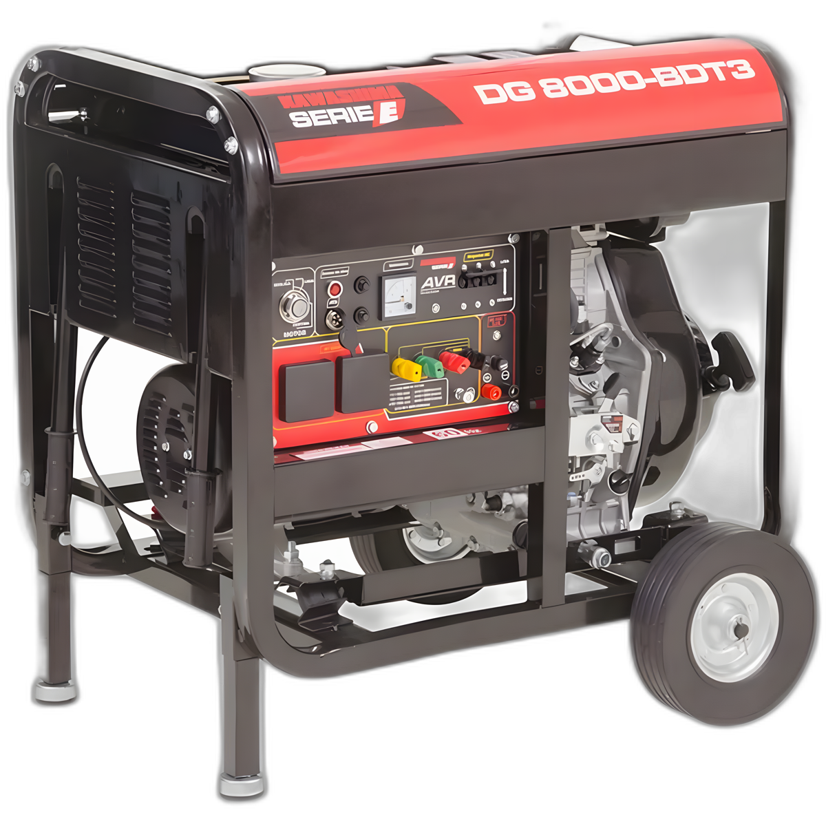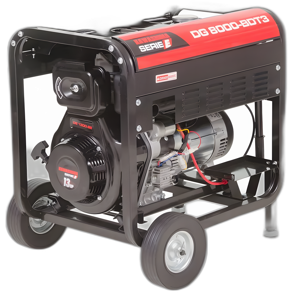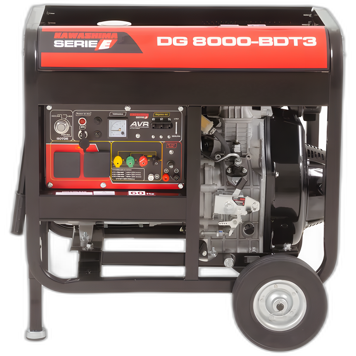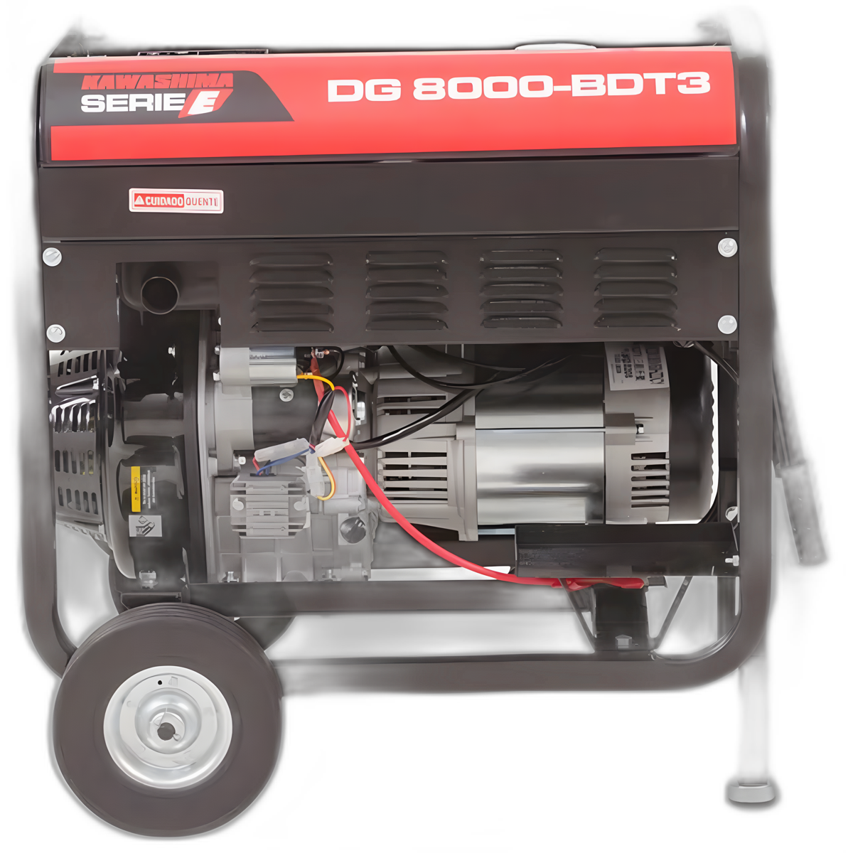 Gerador a Diesel Kawashima DG8000B Trifásico 5700W: Energia Confiável 380V/220VGaranta energia ininterrupta e confiável com o Gerador a Diesel Kawashima DG8000B-BDT3. Projetado para oferecer máxima performance e segurança, este potente gerador trifásico de 5700W (potência nominal) e 6200W (potência máxima) é a solução ideal para diversas aplicações, desde residências e chácaras até comércios e pequenas indústrias que necessitam de uma fonte de energia robusta e estável. Com a renomada qualidade Kawashima, o modelo DG8000B-BDT3 opera nas tensões de 380V e 220V, adaptando-se perfeitamente às suas necessidades elétricas e garantindo versatilidade em ambientes que demandam diferentes configurações de voltagem.Equipado com um motor diesel monocilíndrico de 456 cc, 4 tempos e refrigerado a ar, este gerador oferece durabilidade e economia, com um consumo de combustível otimizado de 370 g/kWh. O sistema de partida é elétrico, proporcionando conveniência e agilidade no acionamento, além da opção manual para maior versatilidade. Seu Regulador de Tensão Automático (AVR Digital) garante uma saída de energia estável, protegendo seus equipamentos eletrônicos de flutuações. Além disso, o DG8000B-BDT3 já vem preparado para ATS (Painel Automático de Transferência), facilitando a instalação de um sistema de backup automático. Com um tanque de combustível de 12,5 litros, você terá maior autonomia para operar por períodos prolongados, sem interrupções e com a tranquilidade que só um gerador a diesel pode oferecer.Especificações Modelo: DG 8000-BDT3 Tipo: Gerador a diesel, trifásico Motor: Kawashima Serie E DE 1300-BE (Monocilíndrico, horizontal, diesel, 4T, refrigerado a ar) Cilindradas: 456 cc Tensão: 380 V / 220 V Trifásico Frequência: 60 Hz Potência Nominal: 5700 W / 7,2 kVA Potência Máxima: 6200 W / 8,0 kVA Capacidade do Tanque de Combustível: 12,5 L Consumo de Combustível: 370 g/kWh Sistema de Partida: Elétrico (12V - 30A) e manual Regulador de Tensão: AVR Digital Preparado para ATS: Sim (Painel Automático de Transferência) Carregador de Bateria: 12V 8.3A Voltímetro: Sim Nível de Ruído: 105 dB(A) Peso Líquido: 116 kg Dimensões (A x L x P): 585 x 720 x 480 mmItens Inclusos Gerador a Diesel Kawashima DG8000B-BDT3 (Observação: A bateria para a partida elétrica não está inclusa e deve ser adquirida separadamente.)Perguntas Frequentes (FAQ) Pergunta: Qual a potência nominal e máxima deste gerador?Resposta: A potência nominal é de 5700 W (7,2 kVA) e a potência máxima é de 6200 W (8,0 kVA). Pergunta: Este gerador é monofásico ou trifásico, e quais as tensões de saída?Resposta: É um gerador trifásico, com tensões de saída de 380 V e 220 V. Pergunta: A bateria para a partida elétrica vem inclusa no equipamento?Resposta: Não, a bateria para a partida elétrica não acompanha o equipamento e deve ser adquirida separadamente. Pergunta: O gerador possui regulador automático de tensão (AVR)?Resposta: Sim, ele é equipado com Regulador de Tensão AVR Digital para maior estabilidade. Pergunta: Este modelo pode ser conectado a um sistema de ATS (Painel Automático de Transferência)?Resposta: Sim, o Gerador Kawashima DG8000B-BDT3 já vem preparado para ATS.