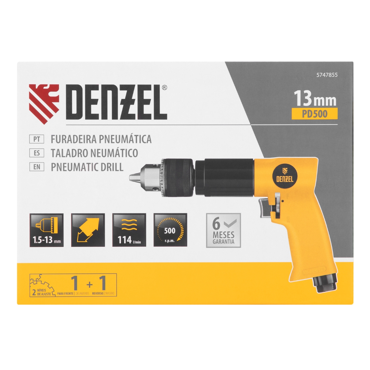 Furadeira Pneumática 13mm 500RPM 114L/min Denzel PD500