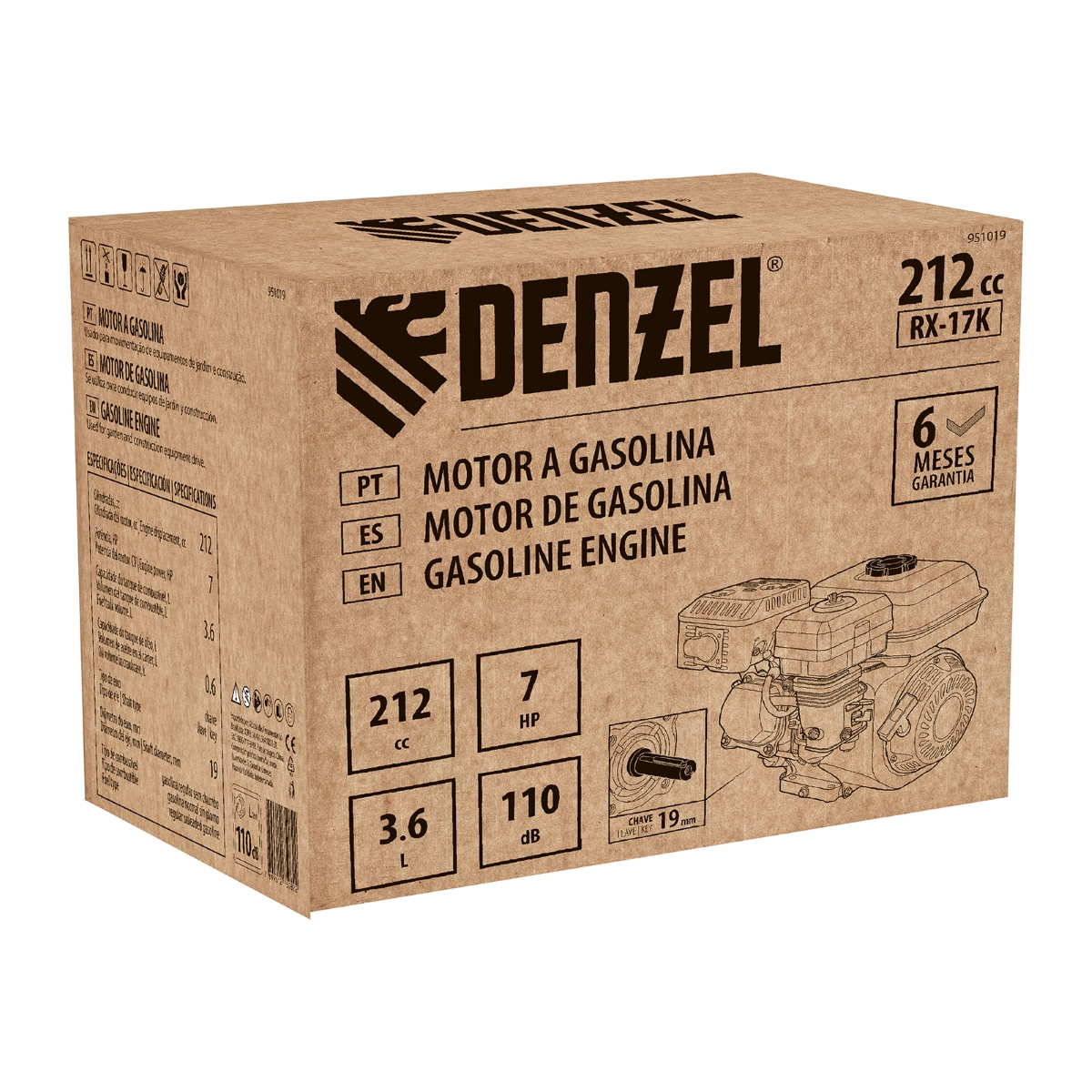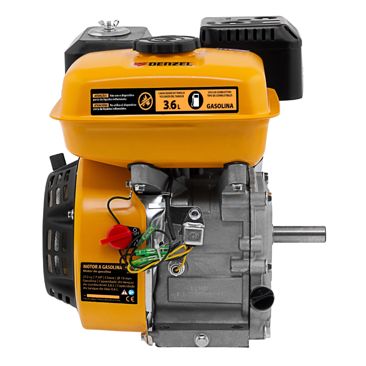 Motor Gasolina 7HP 212cc Eixo Horizontal 19mm Partida Manual Denzel RX-17K