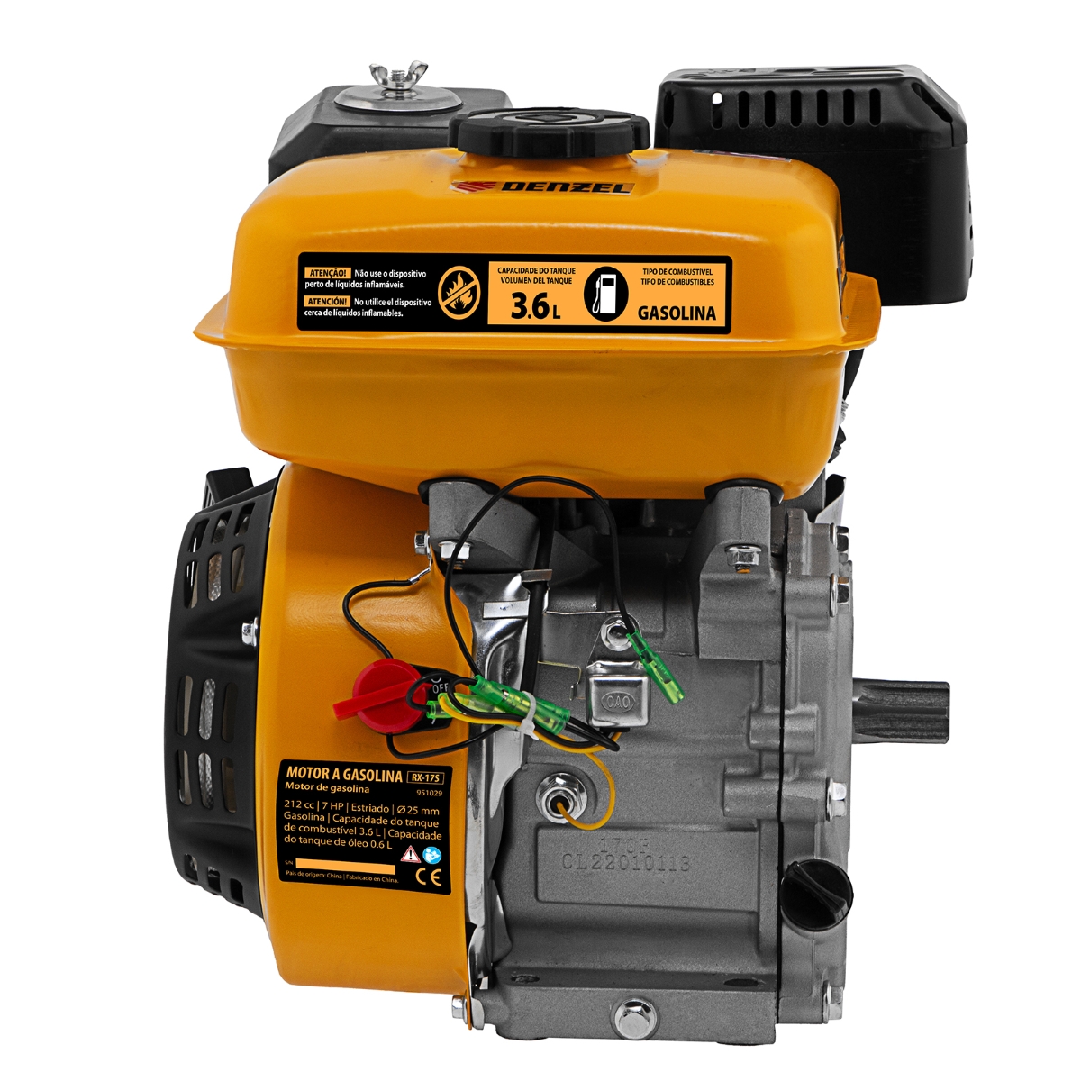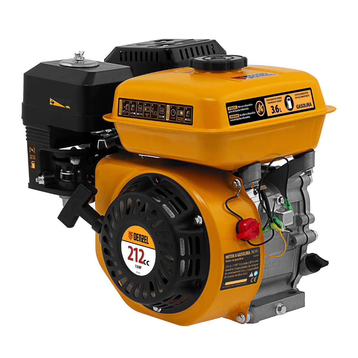 Motor a Gasolina 7HP 212cc Eixo Estriado Horizontal 25mm Denzel RX-17S