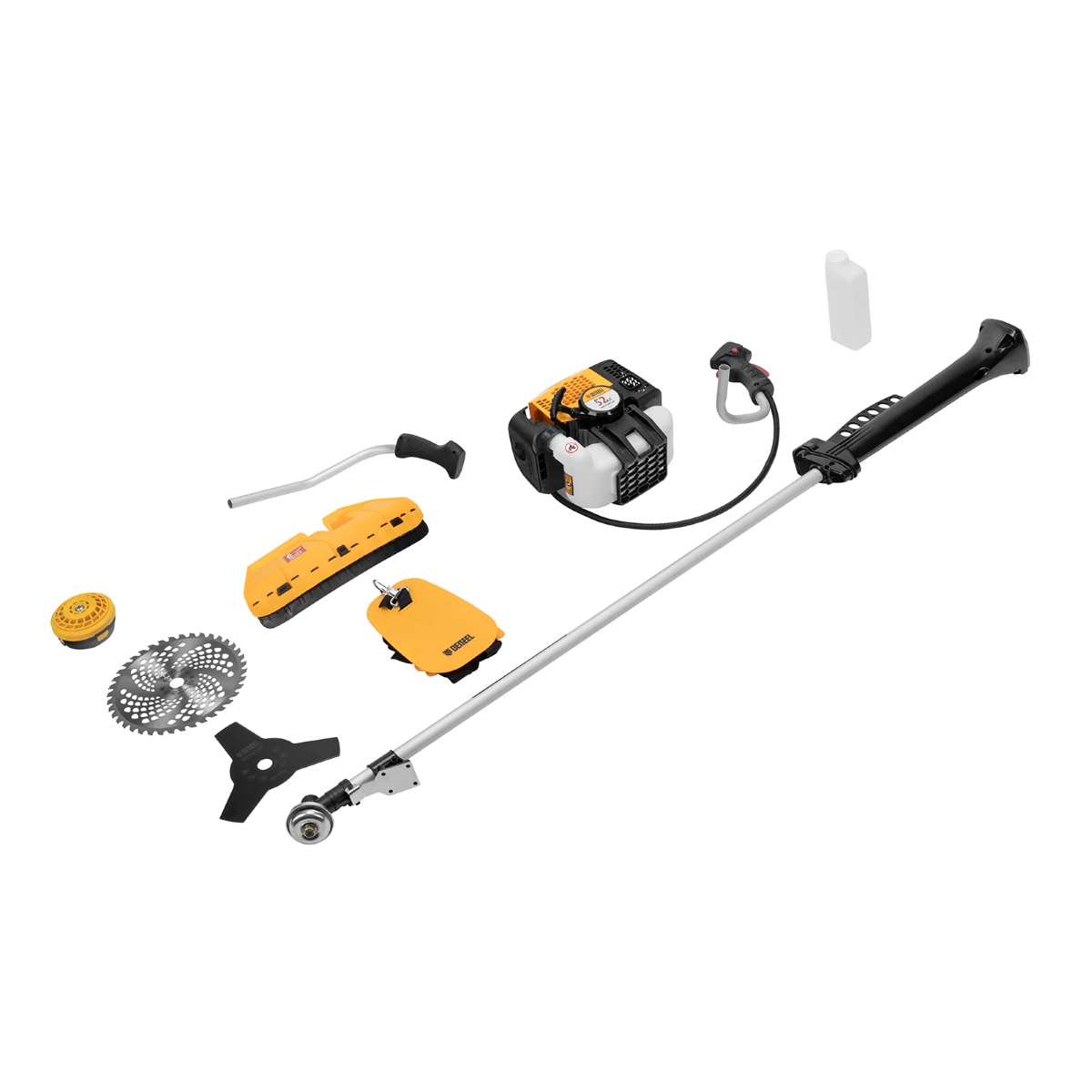 Rocadeira a Gasolina DGT-52-PRO: Corte Eficiente e Conforto Superior A Rocadeira a Gasolina Denzel DGT-52-PRO 962789 é a solução completa para o cuidado do seu jardim, combinando potência, versatilidade e conforto. Equipada com um motor de 52 cc e sistema anti-vibração, esta rocadeira oferece desempenho excepcional no corte de grama, vegetação densa, caules lenhosos e até mesmo na poda de arbustos com diâmetro de até 10 mm. Ideal para uso semi-profissional em fazendas, sítios e áreas urbanas, a DGT-52-PRO garante eficiência em grandes áreas, processando até 20 acres por hora. Seu design com haste inteiriça e caixa de engrenagens integrada simplifica a montagem e permite o uso imediato. Desfrute de um trabalho mais produtivo com a economia de combustível de 1,2 L/h, que proporciona até 40 minutos de operação contínua. A DGT-52-PRO é construída com materiais de alta qualidade, como cilindro cromado e embreagem reforçada, garantindo durabilidade e confiabilidade. O sistema Easy Start e o controle de cruzeiro facilitam o uso, enquanto a capa protetora e o bloqueio do acelerador garantem a segurança do operador. Invista na Rocadeira Denzel e transforme a manutenção do seu jardim em uma tarefa mais fácil e agradável. Especificações Ciclo do motor: Dois tempos Classe de produto: Semi-profissional Material do corpo: Plástico Tipo de motor: A gasolina Cilindrada do motor: 52 cm³ Consumo de combustível: 1,2 L/h Diâmetro máximo do fio: 3 mm Largura de corte com faca: 255 mm Largura de corte com fio: 460 mm Nível de potência sonora: 114 dB Potência do motor: 2 hp Velocidade de rotação do fuso: 9500 об/min (9500 RPM) Itens Inclusos Rocadeira a Gasolina Denzel DGT-52-PRO Perguntas Frequentes (FAQ) Pergunta: Qual o tipo de combustível utilizado?Resposta: A rocadeira utiliza uma mistura de gasolina e óleo 2 tempos. Pergunta: A rocadeira vem montada?Resposta: Não, a rocadeira requer montagem simples. O kit de chaves para montagem está incluso. Pergunta: Qual a garantia do produto?Resposta: Garantia legal: 90 dias. Pergunta: Qual o diâmetro máximo de corte com a faca?Resposta: 255 mm. Pergunta: A rocadeira possui sistema anti-vibração?Resposta: Sim, a DGT-52-PRO possui sistema anti-vibração para maior conforto durante o uso.