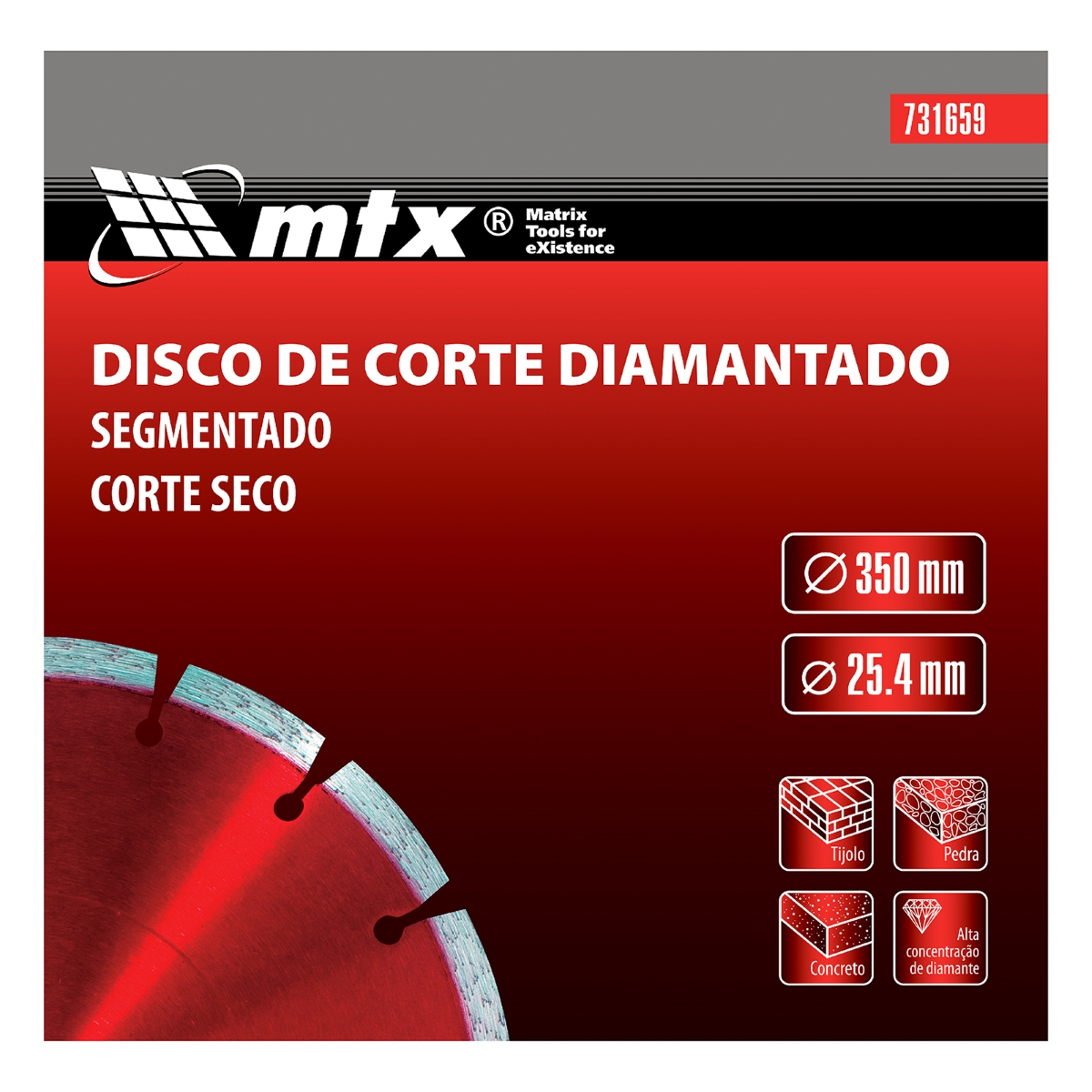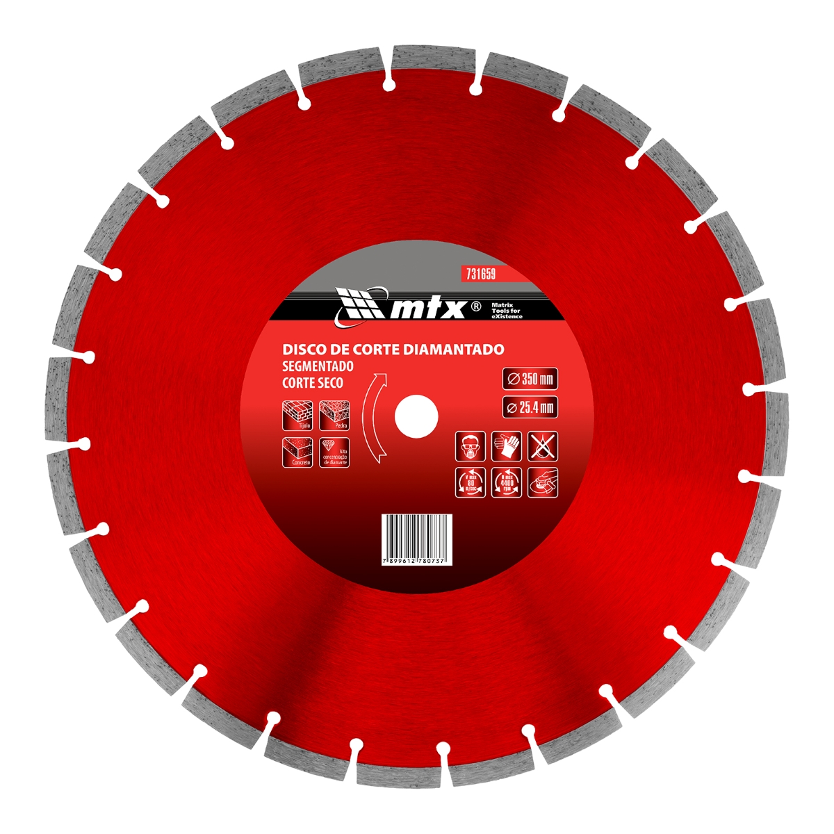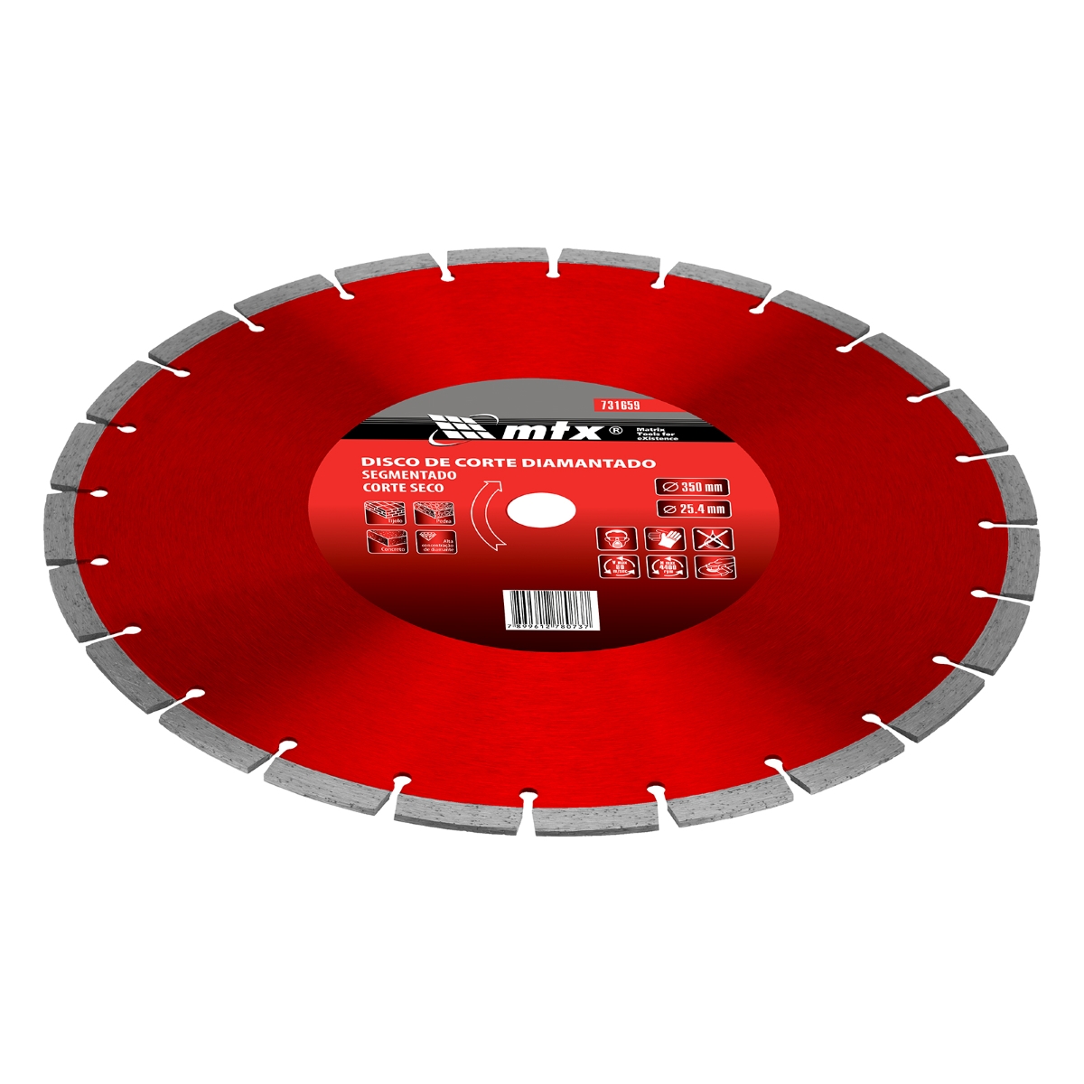 Disco Corte Segmentado Diamantado 350x25.4mm Corte Seco com Anel Redutor MTX