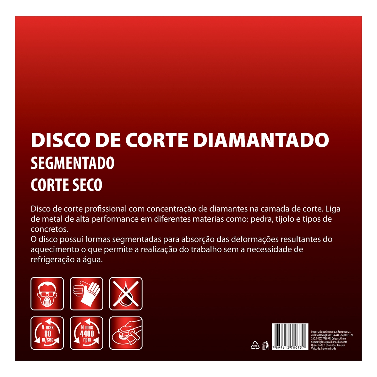 Disco de Corte Diamantado 350mm: Corte Seco Preciso e Durável Realize cortes precisos e eficientes em concreto, asfalto e outros materiais com o Disco de Corte Segmentado Diamantado MTX 350 x 25,4mm. Projetado para corte seco, este disco elimina a necessidade de refrigeração constante, otimizando seu tempo e produtividade em obras e demolições. Sua segmentação diamantada garante alta performance e durabilidade, mesmo em trabalhos pesados e contínuos. O anel redutor incluso aumenta a versatilidade, permitindo o uso em diferentes tipos de máquinas com variações no diâmetro do eixo. Ideal para serras de bancada e cortadores manuais, este disco oferece cortes rápidos, limpos e com menor risco de superaquecimento, prolongando sua vida útil e garantindo um desempenho consistente. Invista em uma ferramenta confiável e de alta qualidade para seus projetos de construção e reforma. Especificações Diâmetro: 350 mm Diâmetro do Furo: 25,4 mm Tipo de Corte: Seco Segmentação: Diamantada País de Fabricação: China Itens Inclusos 1 Disco de Corte Segmentado Diamantado MTX 350 x 25,4mm 1 Anel Redutor Perguntas Frequentes (FAQ) Pergunta: Este disco pode ser usado em qualquer tipo de serra?Resposta: O disco é compatível com serras de bancada e cortadores manuais que possuam um diâmetro de furo de 25,4 mm. O anel redutor permite adaptação a outros diâmetros. Pergunta: É necessário usar água durante o corte?Resposta: Não, este disco é projetado para corte seco, dispensando o uso de água para refrigeração. Pergunta: Qual a durabilidade média do disco?Resposta: A durabilidade depende da intensidade e frequência de uso, bem como do tipo de material cortado. A segmentação diamantada garante uma vida útil prolongada em comparação com discos convencionais.