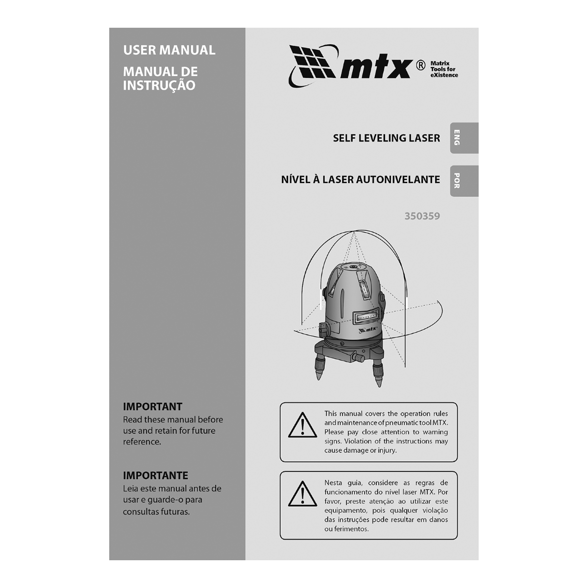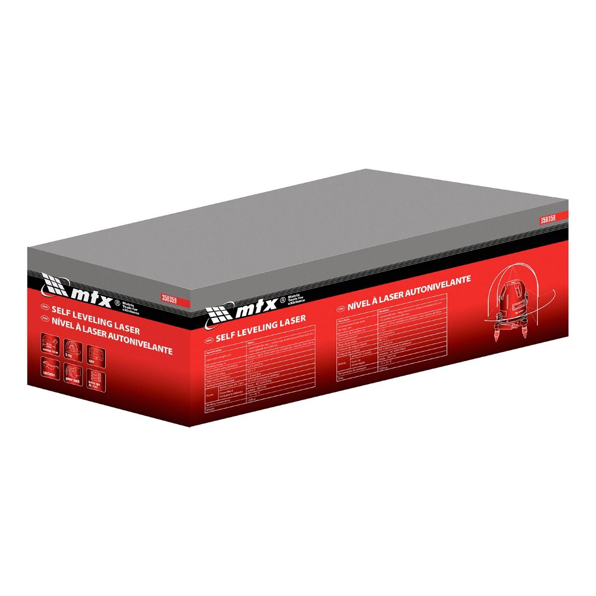 Nível Laser Rotativo Autonivelante 10m Precisão ±1mm/m 2 Linhas 90° Automação MTX 350359