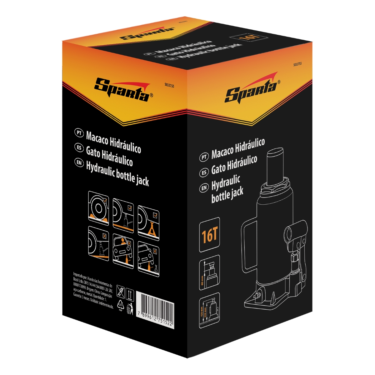 Macaco Hidráulico Tipo Garrafa 16 Toneladas: Elevação Segura e Eficiente Precisa de força e confiabilidade para levantar cargas pesadas? O Macaco Hidráulico de Garrafa Sparta 5032755 é a solução ideal para oficinas, garagens e uso profissional. Com capacidade de até 16 toneladas, ele eleva veículos e equipamentos com facilidade, garantindo segurança e praticidade. Sua construção robusta em aço e ferro fundido de alta resistência assegura durabilidade e longa vida útil. A altura de elevação ajustável, entre 220 e 420 mm, permite adaptar o macaco a diferentes necessidades, enquanto a alavanca removível facilita o armazenamento e o transporte. Invista em um equipamento que combina potência, segurança e conveniência para suas tarefas de levantamento. Especificações Capacidade: 16 toneladas Altura de Elevação: 420 mm Altura Mínima de Elevação: 220 mm Curso de Trabalho: 200 mm Curso do Parafuso de Extensão: 60 mm Diâmetro da Haste do Primeiro Estágio: 48 mm Diâmetro do Suporte: 32.5 mm Largura: 135 mm Material do Corpo: Aço Peso: 7,55 kg Itens Inclusos Macaco Hidráulico de Garrafa Sparta 5032755 Alavanca Removível Perguntas Frequentes (FAQ) Pergunta: Qual a capacidade máxima de carga deste macaco?Resposta: A capacidade máxima de carga é de 16 toneladas. Pergunta: Qual a altura mínima e máxima de elevação?Resposta: A altura mínima de elevação é de 220 mm e a máxima é de 420 mm. Pergunta: Este macaco é fácil de transportar?Resposta: Sim, ele possui uma alavanca removível e pesa apenas 7,55 kg, facilitando o transporte e armazenamento. Pergunta: Qual o material de fabricação do macaco?Resposta: O corpo do macaco é fabricado em aço e a base em ferro fundido de alta resistência. Pergunta: Qual a garantia do produto?Resposta: Garantia legal: 90 dias