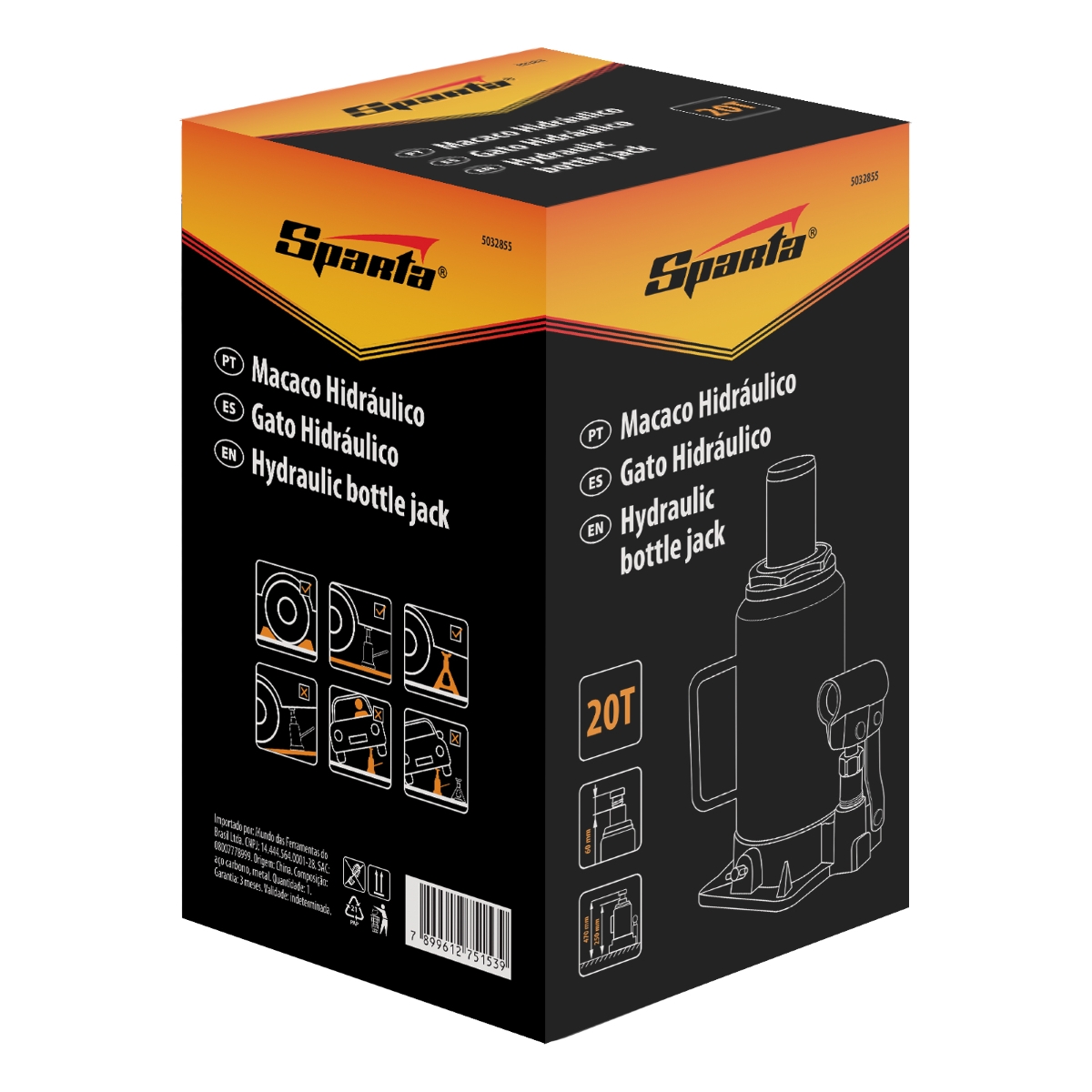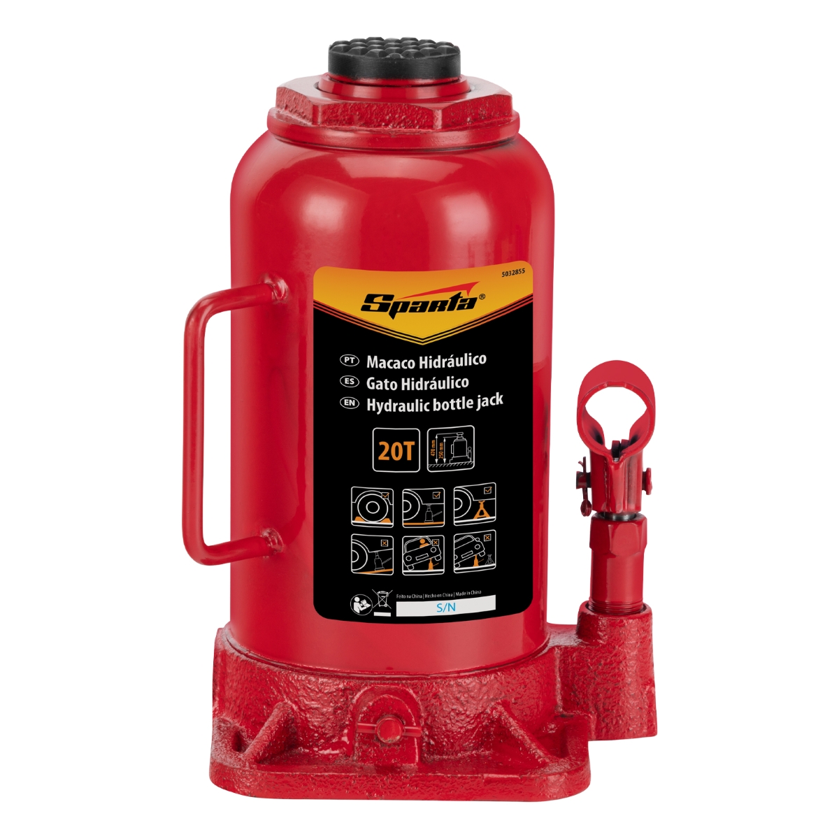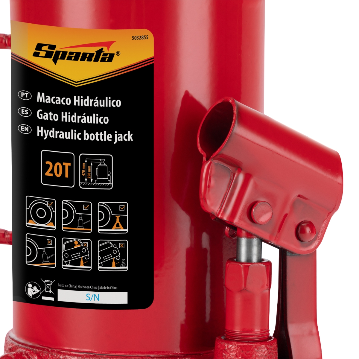 Macaco Hidráulico Garrafa 20 Toneladas 250-470mm Aço Alta Resistência Sparta 5032855
