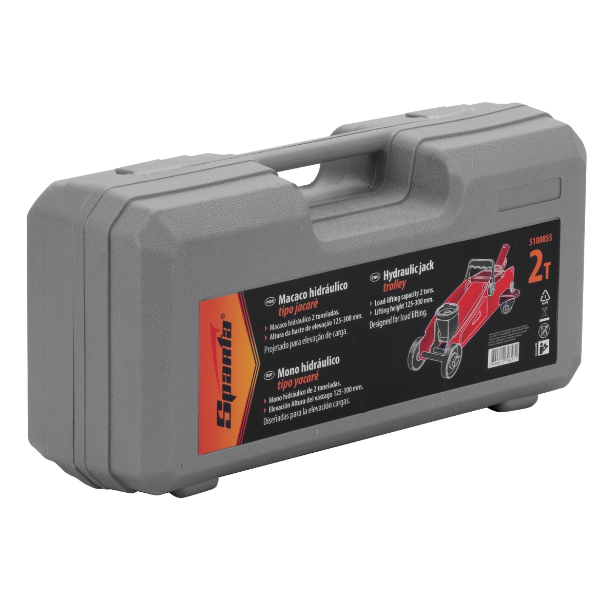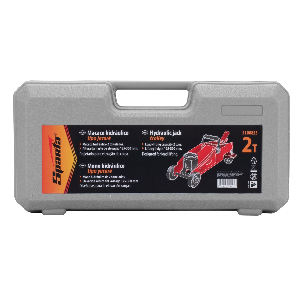Macaco Hidráulico Jacaré 2T 125-300mm Maleta Plástica Sparta 5100855