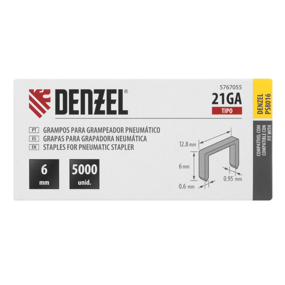 Grampos Pneumáticos Denzel 6mm 0,6mm 128mm 5000pcs Fixação Segura Estofamento Marcenaria