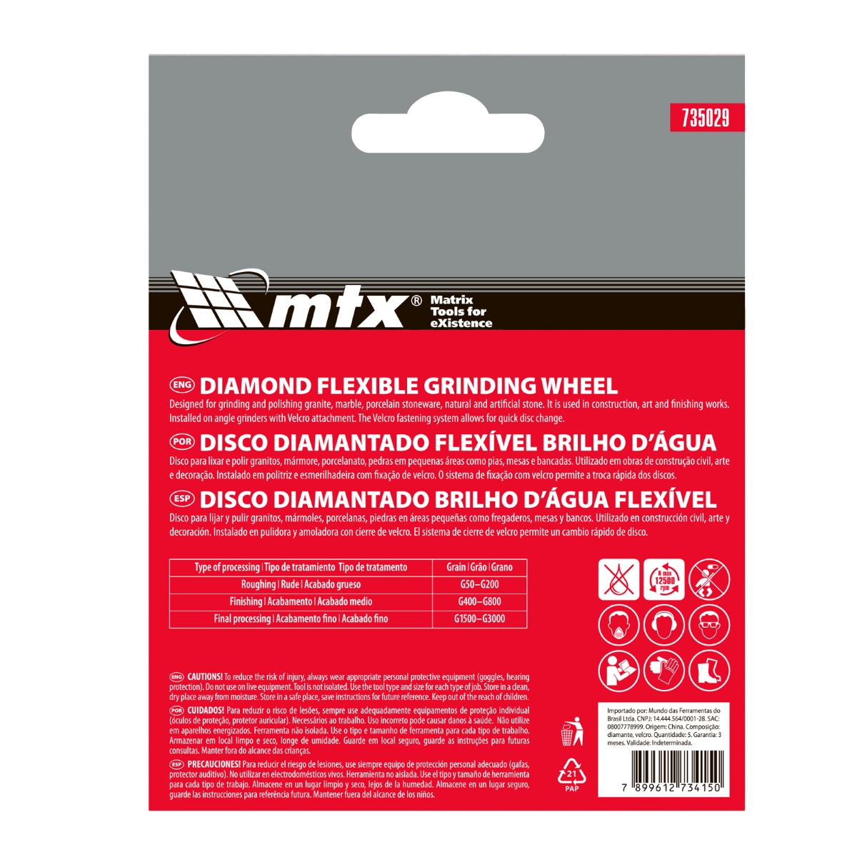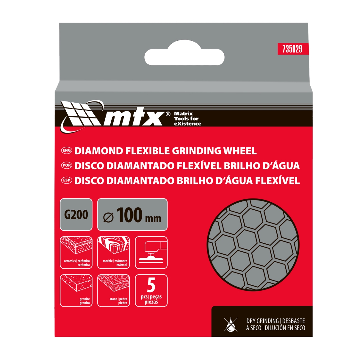 Disco Diamantado Flexível Lixamento Seco 100mm 200 Grãos 5 Peças MTX 735029