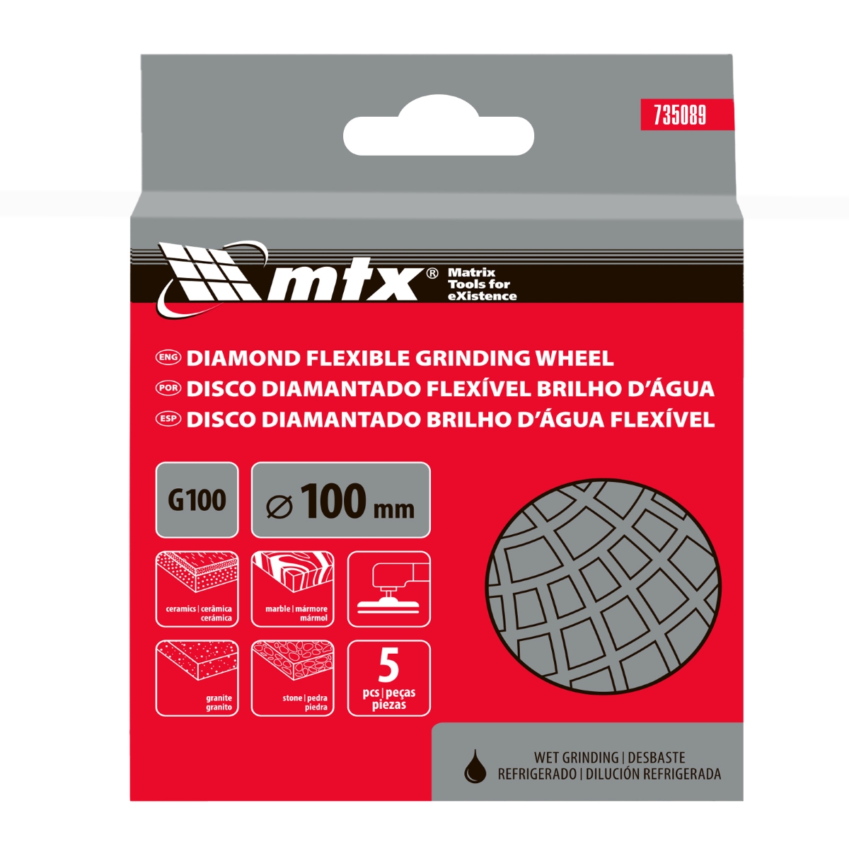 Disco Diamantado Flexível 100mm Grao 100 Desbaste Refrigeração 5Pç MTX 735089