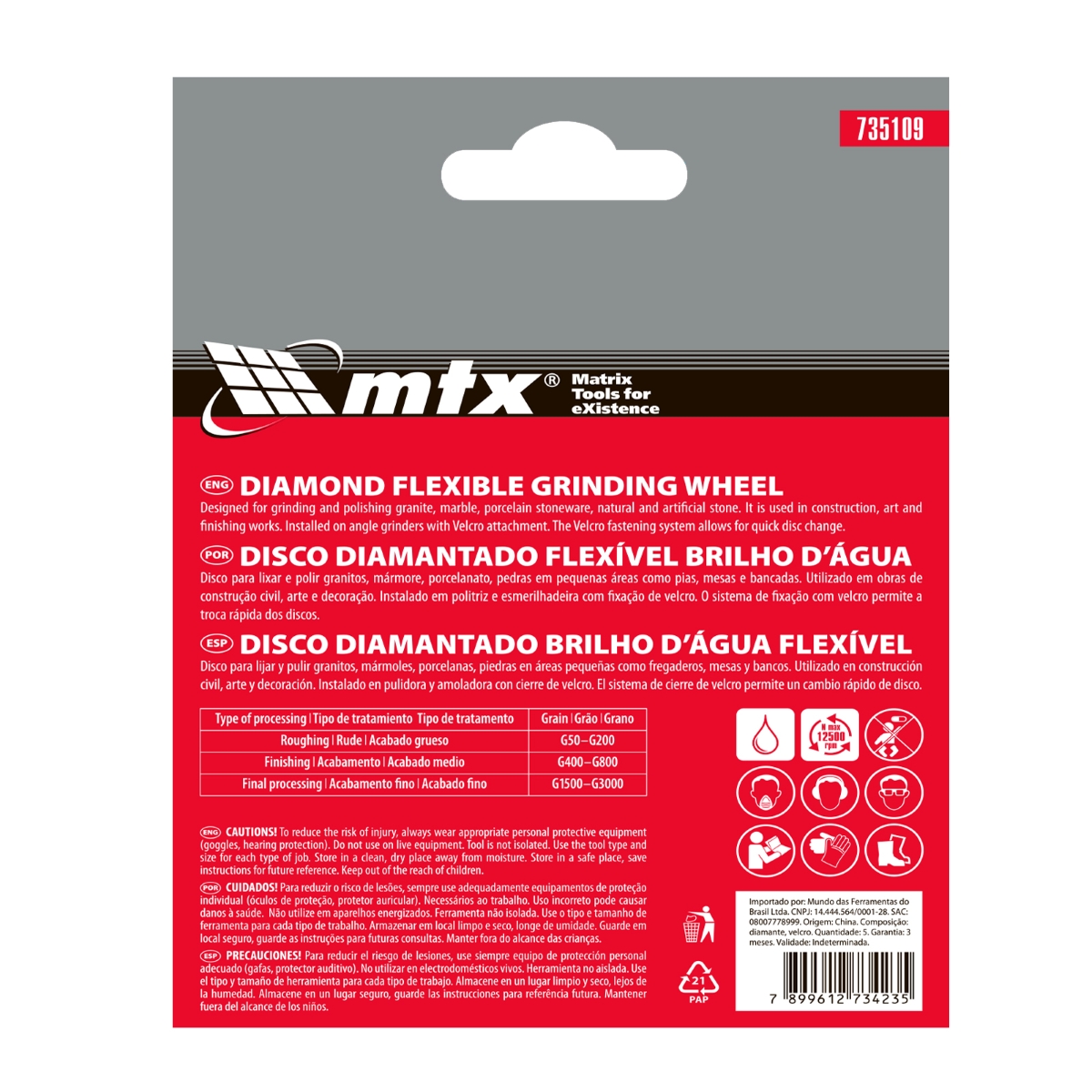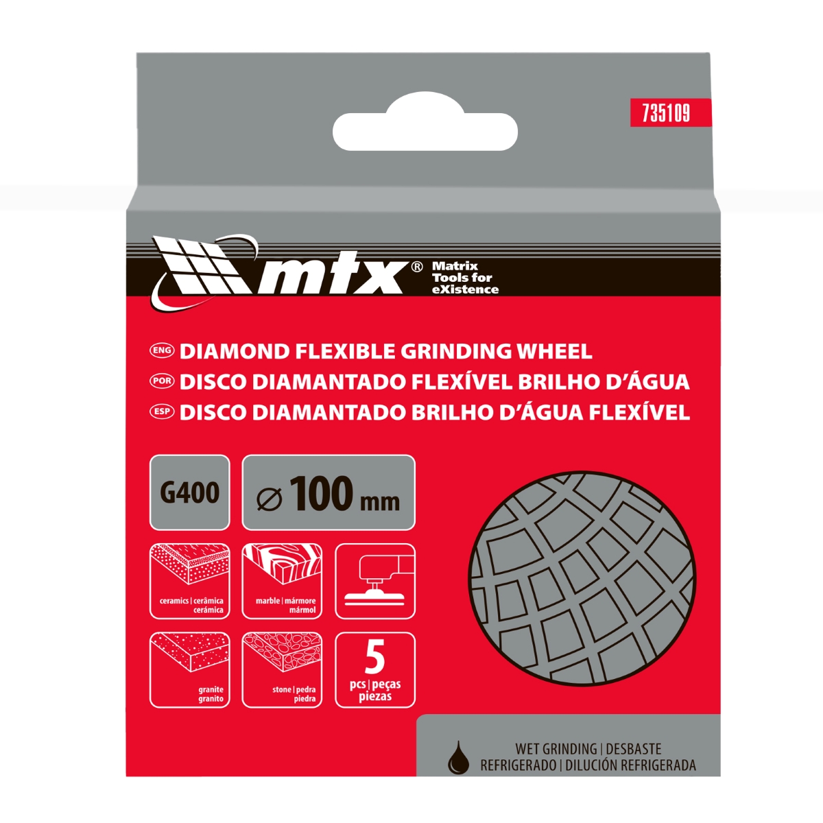 Disco Diamantado Flexível 100mm 5pc MTX Desbaste Refrigerado Grão 400