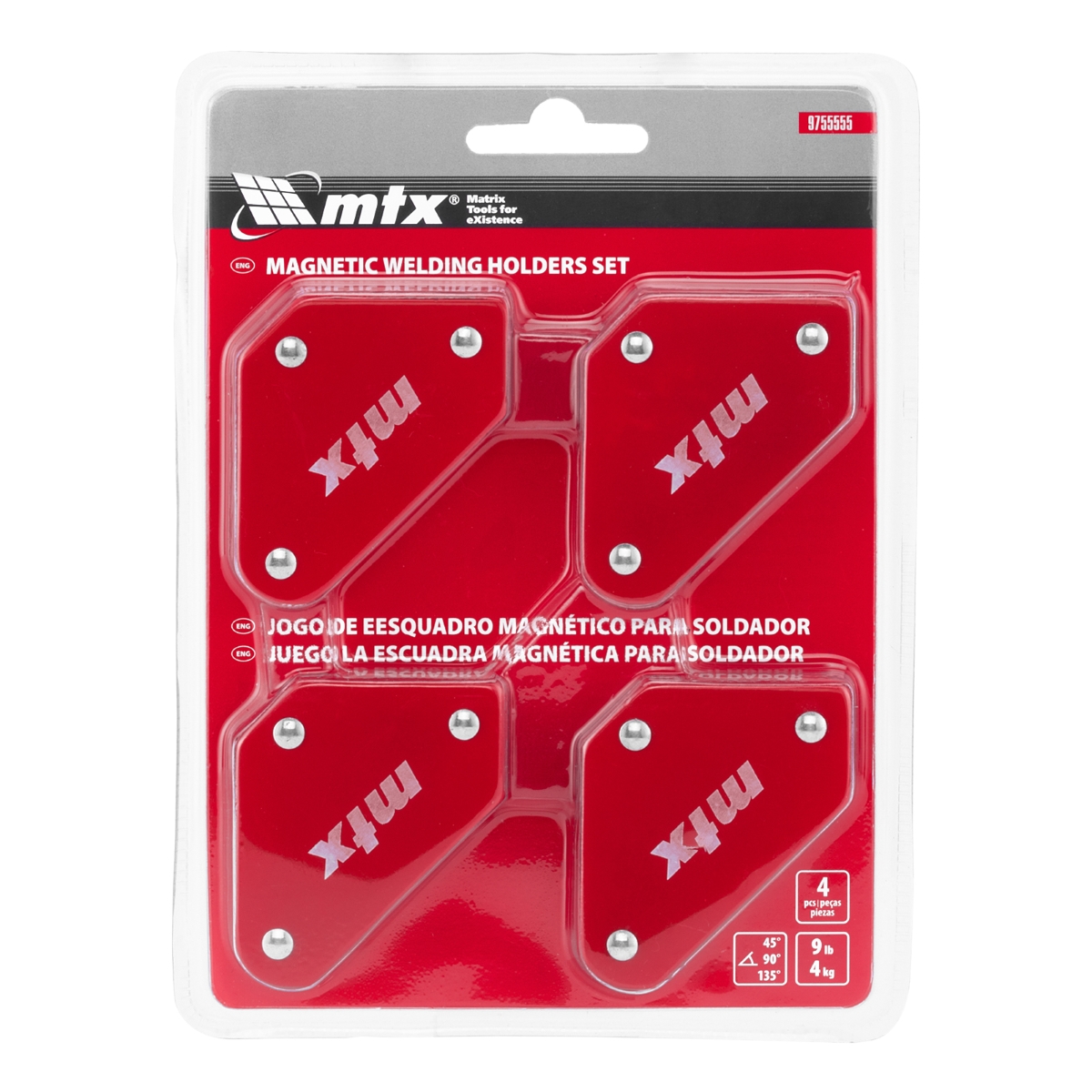 Jogo de Esquadro Magnético para Soldador 9 Libras 4kgf 4PCS Aço Carbono MTX 9755555