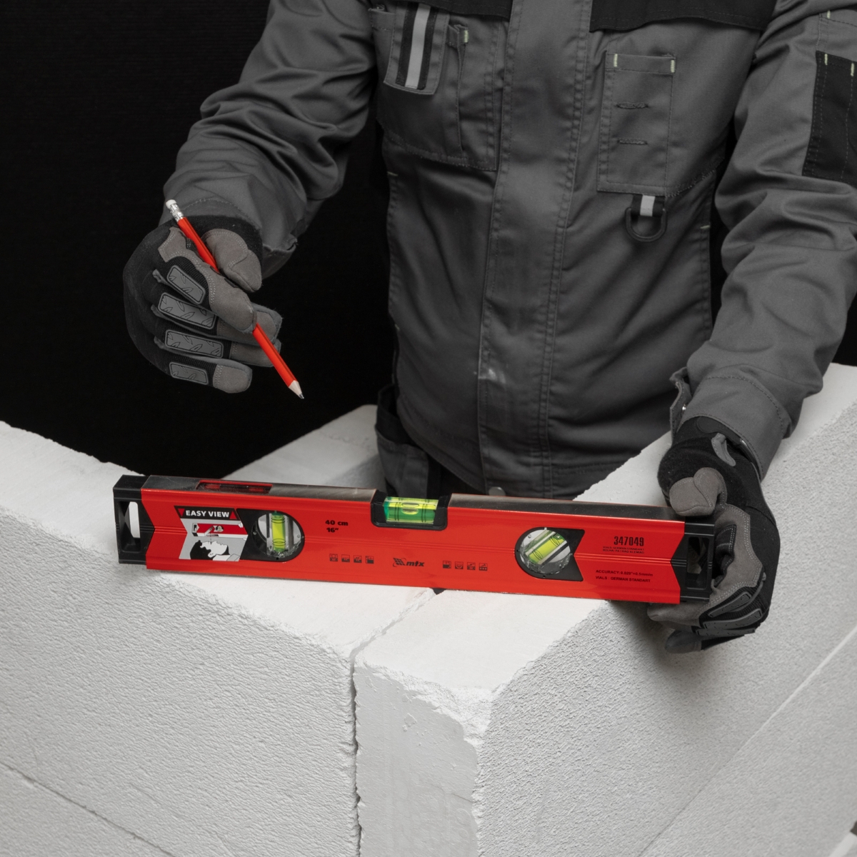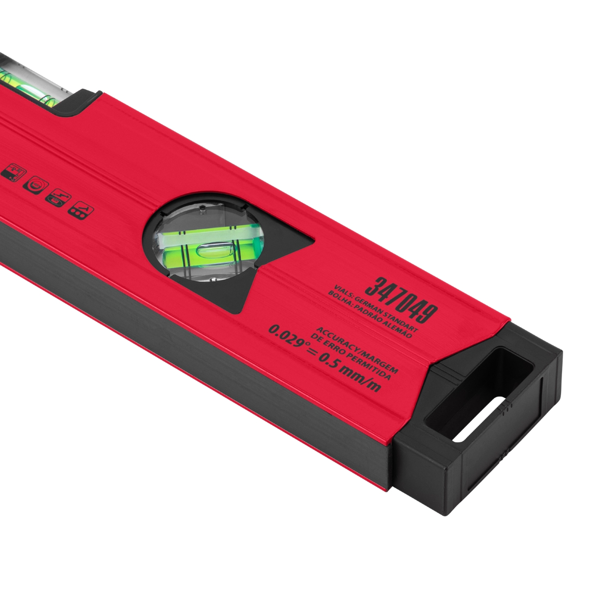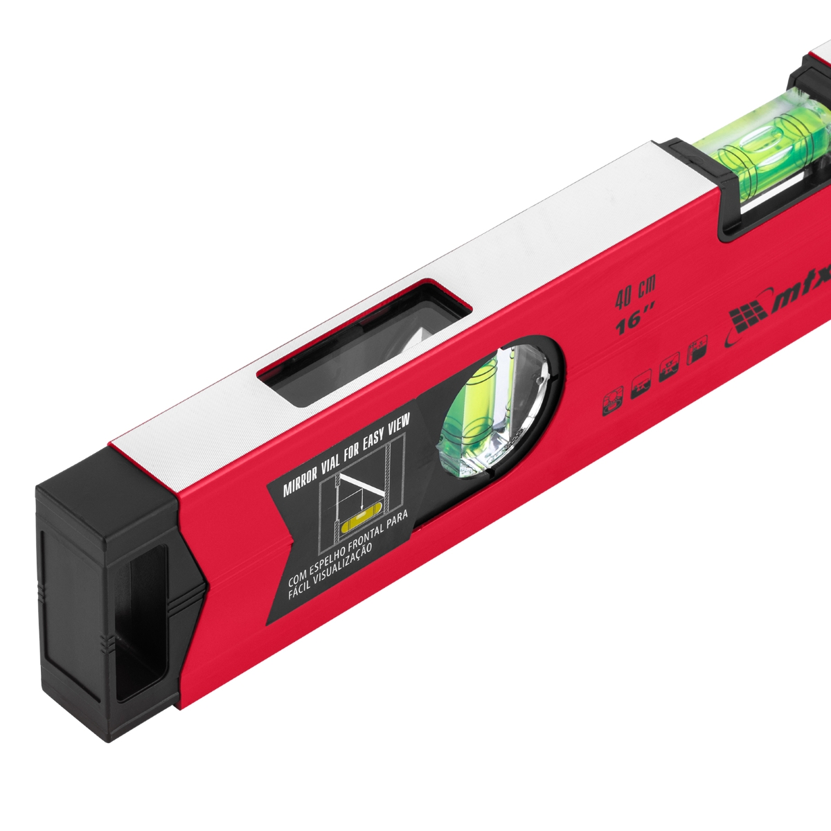 Nível Alumínio Reforçado 3 Bolhas + Espelho 400mm 16pol MTX 347049 Precisão ±0.5mm/m