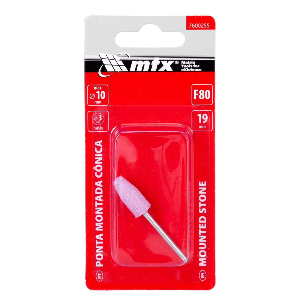 Ponta Montada Cônica Longa 10x19mm Haste 3mm F80 MTX 7600255 Limpeza e Remoção de Rebarbas