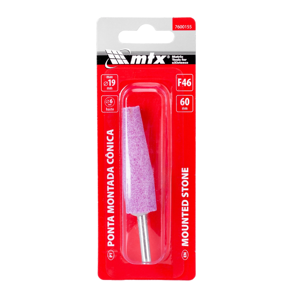 Ponta Montada Cônica Longa 19x60mm Haste 6mm F46 MTX Desbaste Limpeza Furos