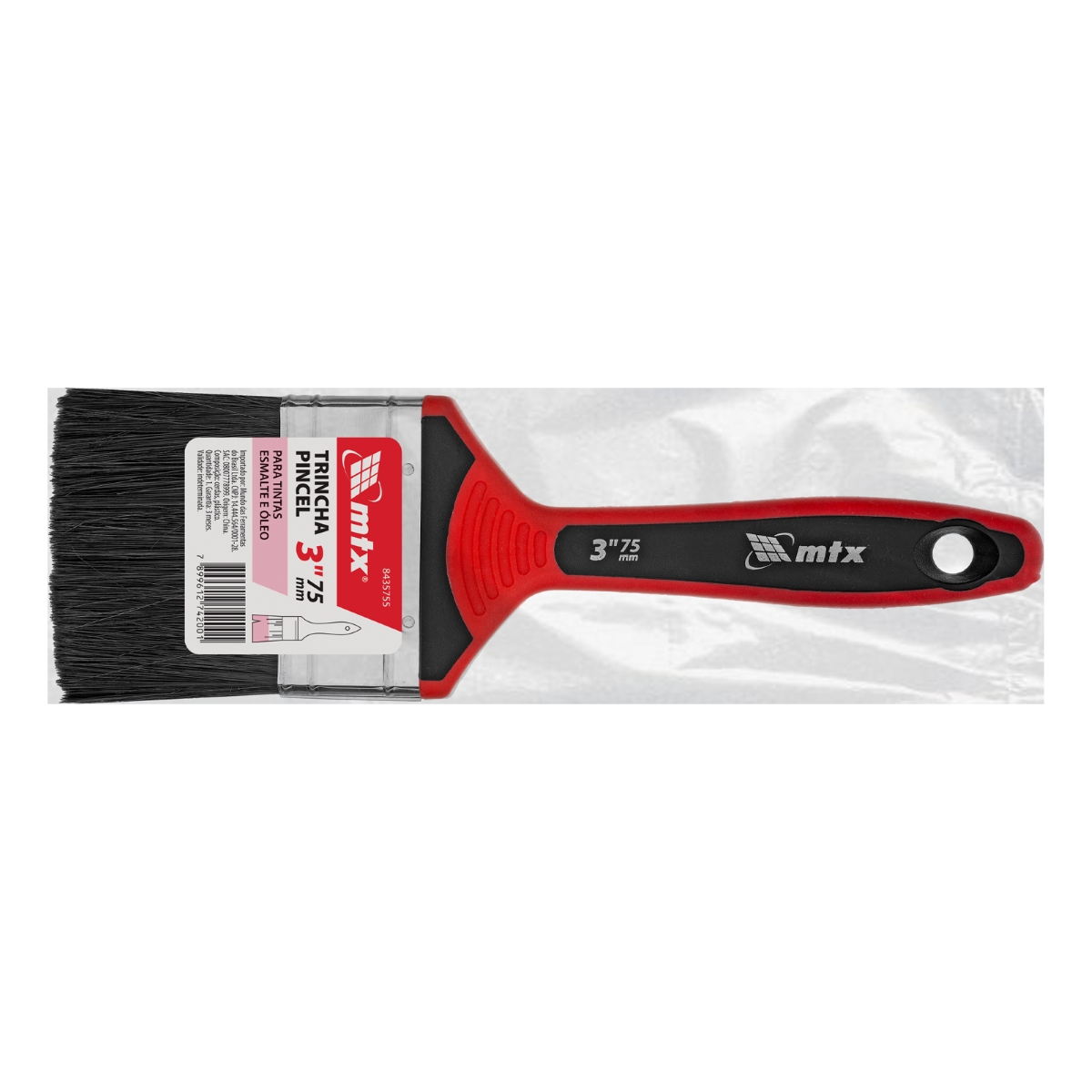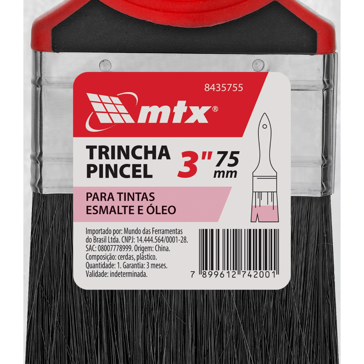 Trincha Pincel 3'' Tintas Esmalte Óleo Cerdas Pretas Cabo 2 Componentes 1PC MTX Profissional