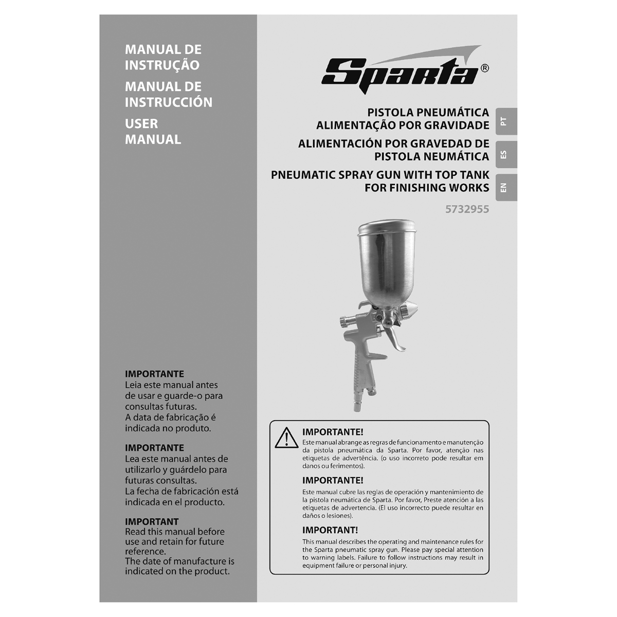 Pistola de Pintura Sparta com Tanque Alto: Acabamento Profissional ao Seu Alcance Obtenha resultados impecáveis em seus projetos de pintura com a Pistola de Pintura Sparta 5732955. Ideal para uso doméstico e profissional, esta pistola de pintura com tanque superior de 100ml e bico de 0,5mm oferece precisão, uniformidade e versatilidade para uma ampla gama de aplicações. Seja para esmaltes, primers, tintas automotivas ou trabalhos em madeira e metal, a Sparta garante um acabamento de alta qualidade com economia e eficiência. Sua construção em alumínio robusto assegura durabilidade e resistência, enquanto o conector rápido de 1/4” facilita a montagem e o uso. Com um consumo de ar de 35 L/min e capacidade de pulverização de até 80ml/min, esta pistola é perfeita para projetos internos e externos, proporcionando um controle preciso sobre o fluxo de tinta e a forma de pulverização. Invista na Pistola de Pintura Sparta e eleve o nível dos seus trabalhos de pintura! Especificações Diâmetro do bico: 0,5 mm Volume do tanque: 0,1 L Consumo de ar: 35 L/min Consumo máximo de material: 80 ml/min Pressão de trabalho: 2,5 - 4 bar Tipo de conexão: Rápido (ARO) 1/4” Material do corpo: Alumínio Itens Inclusos Pistola de Pintura Sparta 5732955 Perguntas Frequentes (FAQ) Pergunta: Para quais tipos de tinta esta pistola é adequada?Resposta: A Pistola de Pintura Sparta é compatível com uma ampla variedade de tintas, incluindo esmaltes, lasures, tintas à base de óleo, tintas automotivas e primers. Pergunta: Qual a pressão de trabalho recomendada?Resposta: A pressão de trabalho recomendada para a Pistola de Pintura Sparta é entre 2,5 e 4 bar. Pergunta: Qual o tipo de conexão da mangueira de ar?Resposta: A pistola possui uma conexão rápida (ARO) de 1/4”. Pergunta: Esta pistola é indicada para pintura de carros?Resposta: Sim, a Pistola de Pintura Sparta é adequada para pintura de carros, proporcionando um acabamento profissional. Pergunta: Qual a garantia do produto?Resposta: Garantia legal: 90 dias