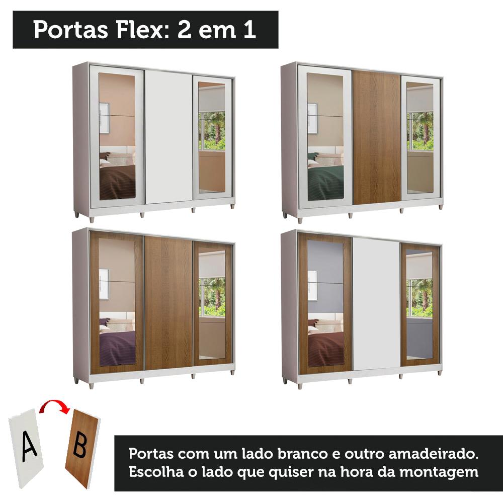 Guarda-Roupa Casal 100% MDF Madesa Eros 3 Portas de Correr com Espelhos com Pés - Branco
