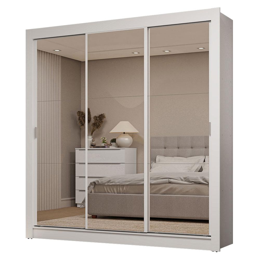 Guarda-Roupa Casal 3 Portas de Correr de Espelho 2 Gavetas Branco Sublime Madesa