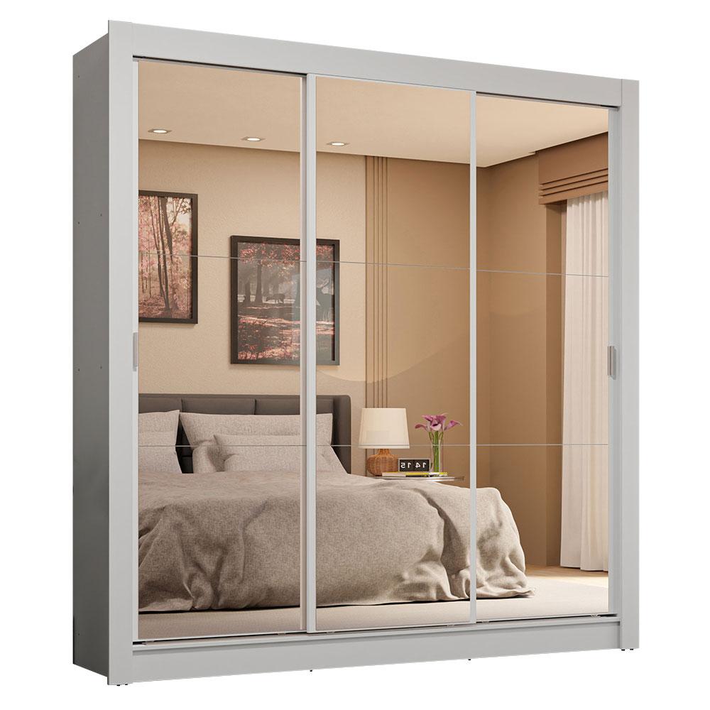 Guarda-Roupa Casal 3 Portas de Correr de Espelho 4 Gavetas Branco Sublime Plus Madesa