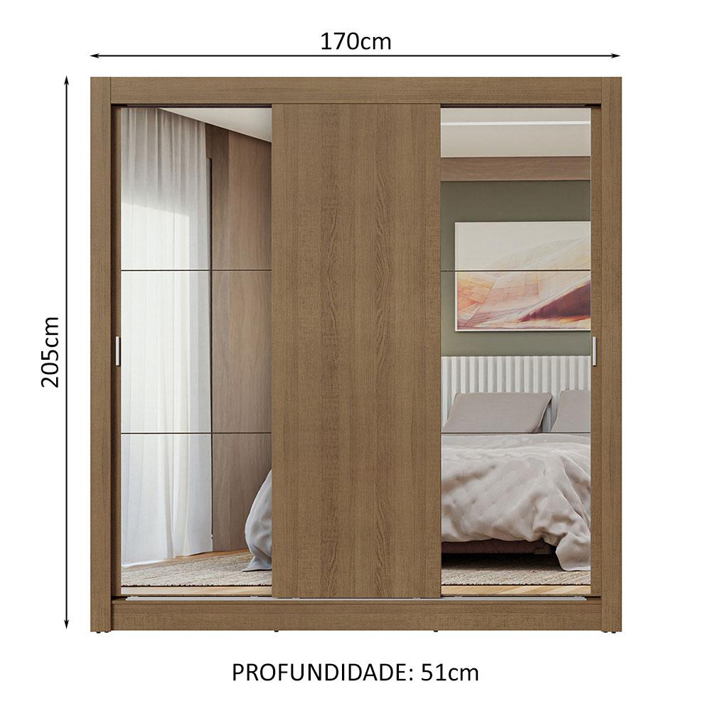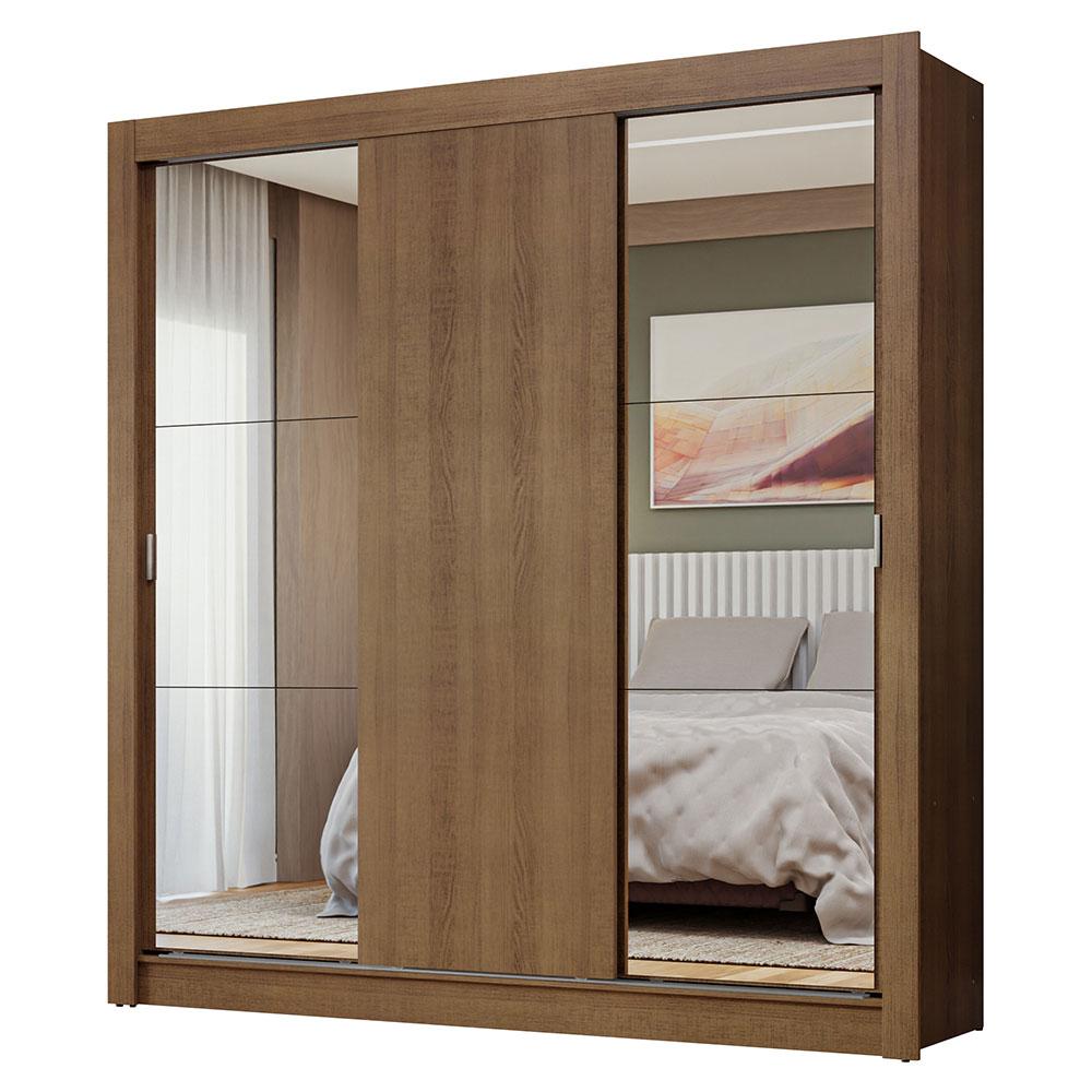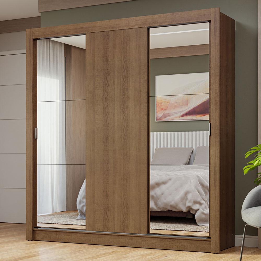 Guarda-Roupa Casal 3 Portas de Correr com Espelhos Rustic Nobre Madesa