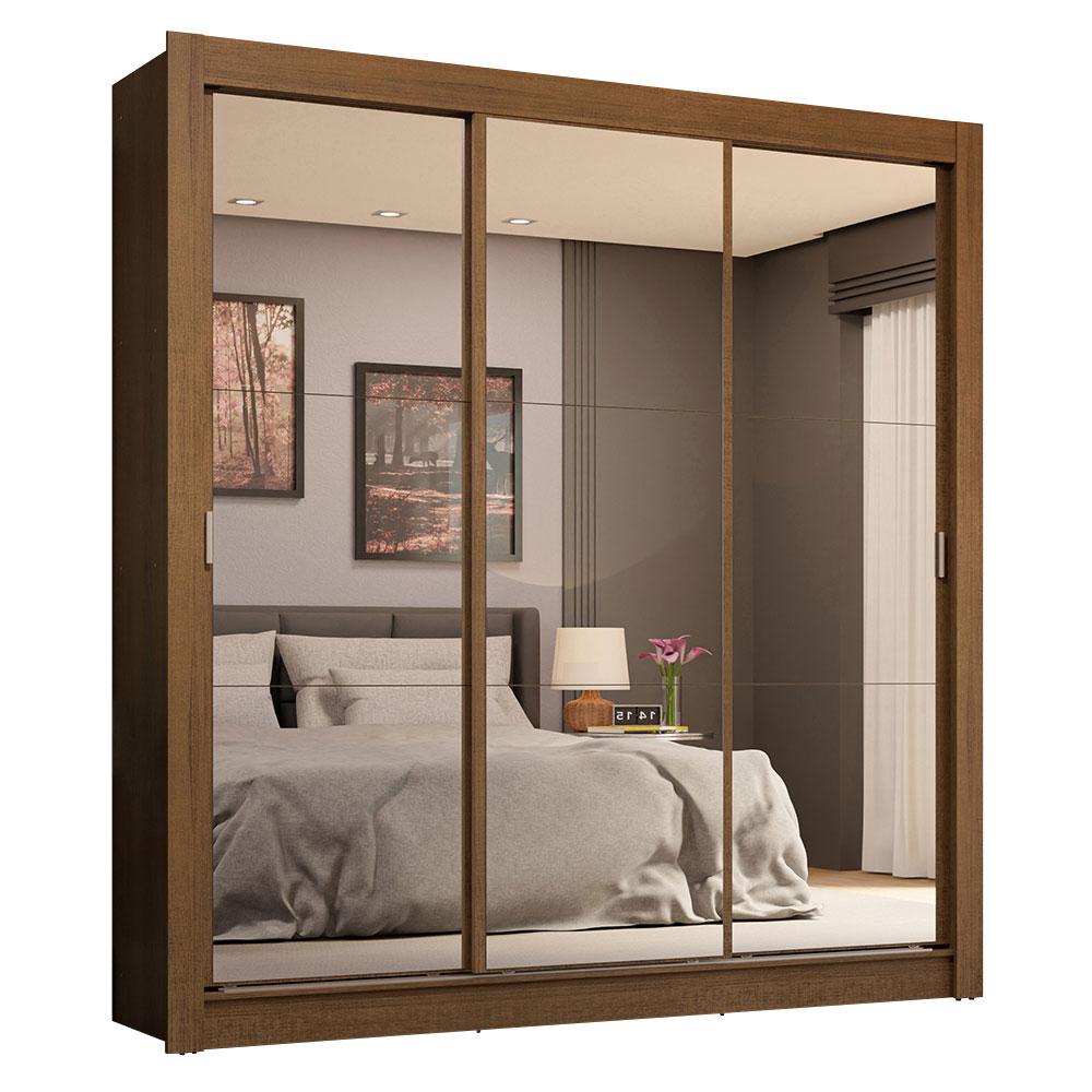 Guarda-Roupa Casal 3 Portas de Correr de Espelho 4 Gavetas Rustic Sublime Plus Madesa