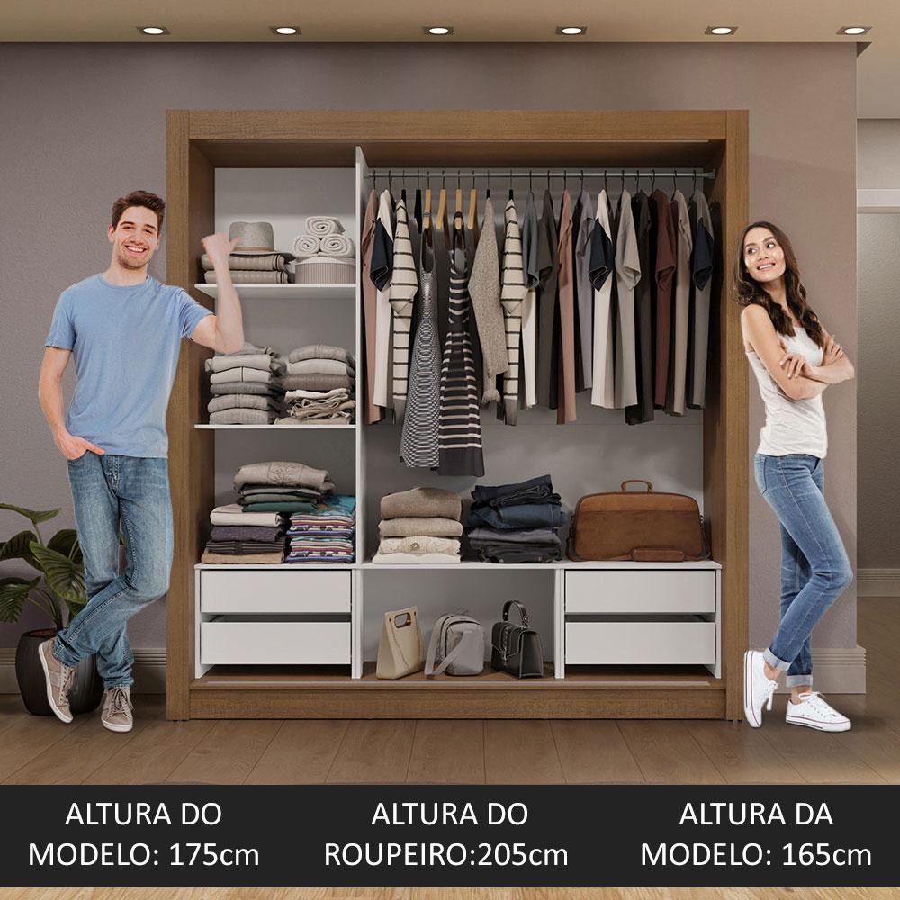 Deixe os seus itens mais organizados e ao alcance com o Guarda-Roupa Casal Sublime Plus da Madesa, uma opção moderna e espaçosa.Características principais: Conta com portas de correr que deslizam suavemente, graças aos trilhos superiores e inferiores em alumínio. Isso garante um funcionamento tranquilo e sem esforço. Todas as portas contam com espelhos, que são úteis no dia a dia e deixam o móvel ainda mais elegante.Ótimo espaço interno e organização: Ideal para um casal, possui diversos nichos e quatro gavetas que facilitam a organização de roupas, calçados e acessórios. O tubo cabideiro metálico é resistente e perfeito para pendurar roupas longas.Acabamento de qualidade: O acabamento em amadeirado Rustic é realizado com a Pintura Poliéster de sete camadas da Madesa, um método ecológico que oferece maior durabilidade e proteção.Medidas totais: 205 cm de altura x 170 cm de largura x 51 cm de profundidade.O que você recebe:- Um (1) Guarda-roupa com quatro gavetas e três portas de correr com espelhos- Ferragens e manual de montagemCódigo do produto: 11935Z3E4GÉ bom saber:- As imagens são meramente ilustrativas- A Madesa não disponibiliza serviço de montagemA Madesa se dedica à sustentabilidade com várias iniciativas: temos uma usina própria para gerar energia que abastece uma de nossas fábricas. Selecionamos nossos fornecedores, priorizando aqueles que possuem um compromisso com a sustentabilidade e proteção do meio ambiente. Todo o plástico utilizado no setor produtivo é proveniente de reciclagem e as suas sobras são encaminhadas ao fornecedor que os recicla. Também investimos no desenvolvimento contínuo de nossos colaboradores e em ações educacionais que beneficiem a comunidade.