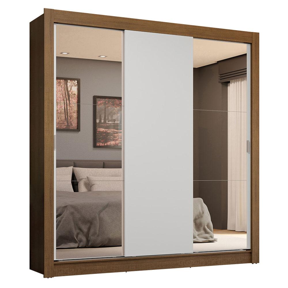 Guarda-Roupa Casal 3 Portas de Correr com Espelhos 4 Gavetas Rustic/Branco Sublime Plus Madesa