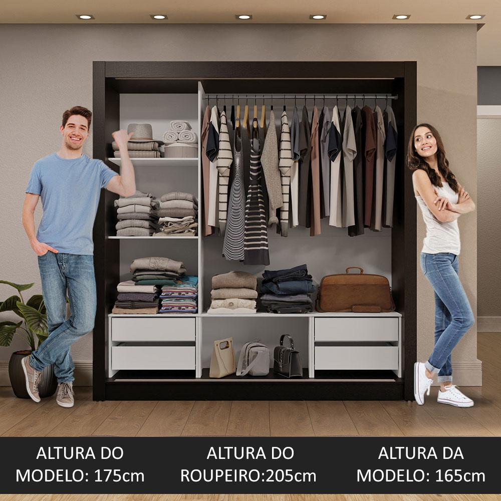 Guarda-Roupa Casal 3 Portas de Correr com Espelho 4 Gavetas Preto/Branco Sublime Plus Madesa