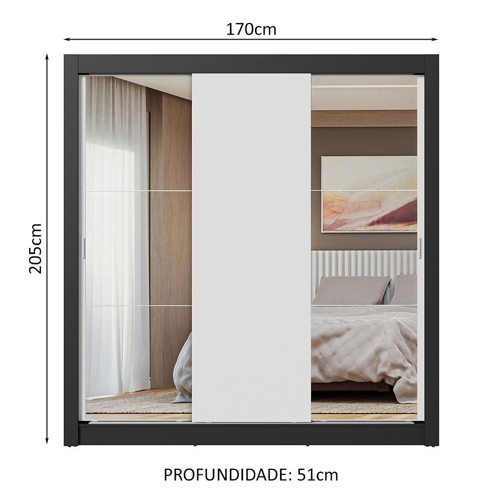 Guarda-Roupa Casal 3 Portas de Correr com Espelhos Preto/Branco Nobre Madesa