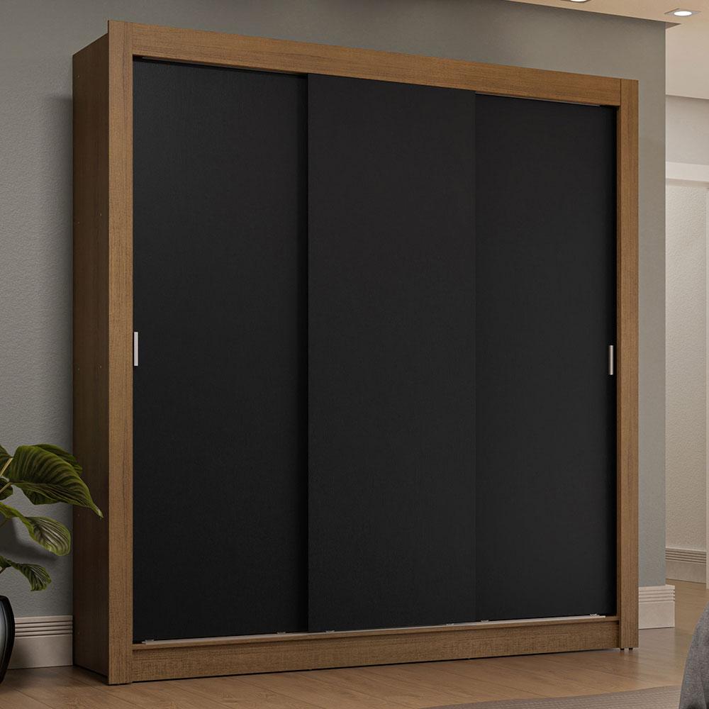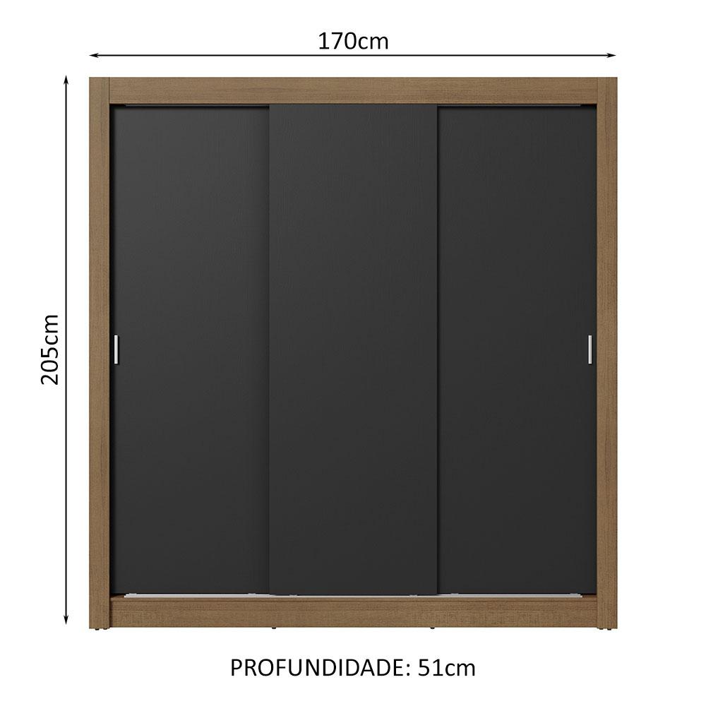 Guarda-Roupa Casal 3 Portas de Correr Rustic/Preto Sublime Plus Madesa
