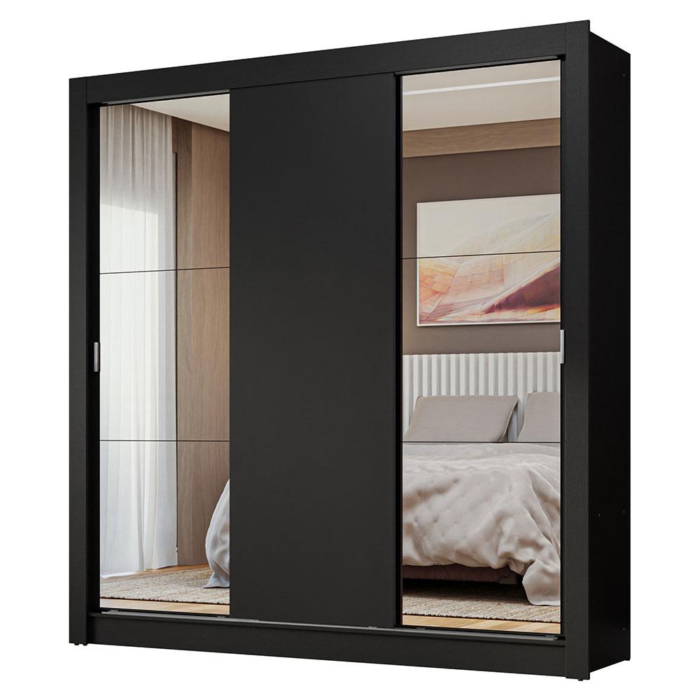 Guarda-Roupa Casal 3 Portas de Correr com Espelhos Preto Nobre Madesa