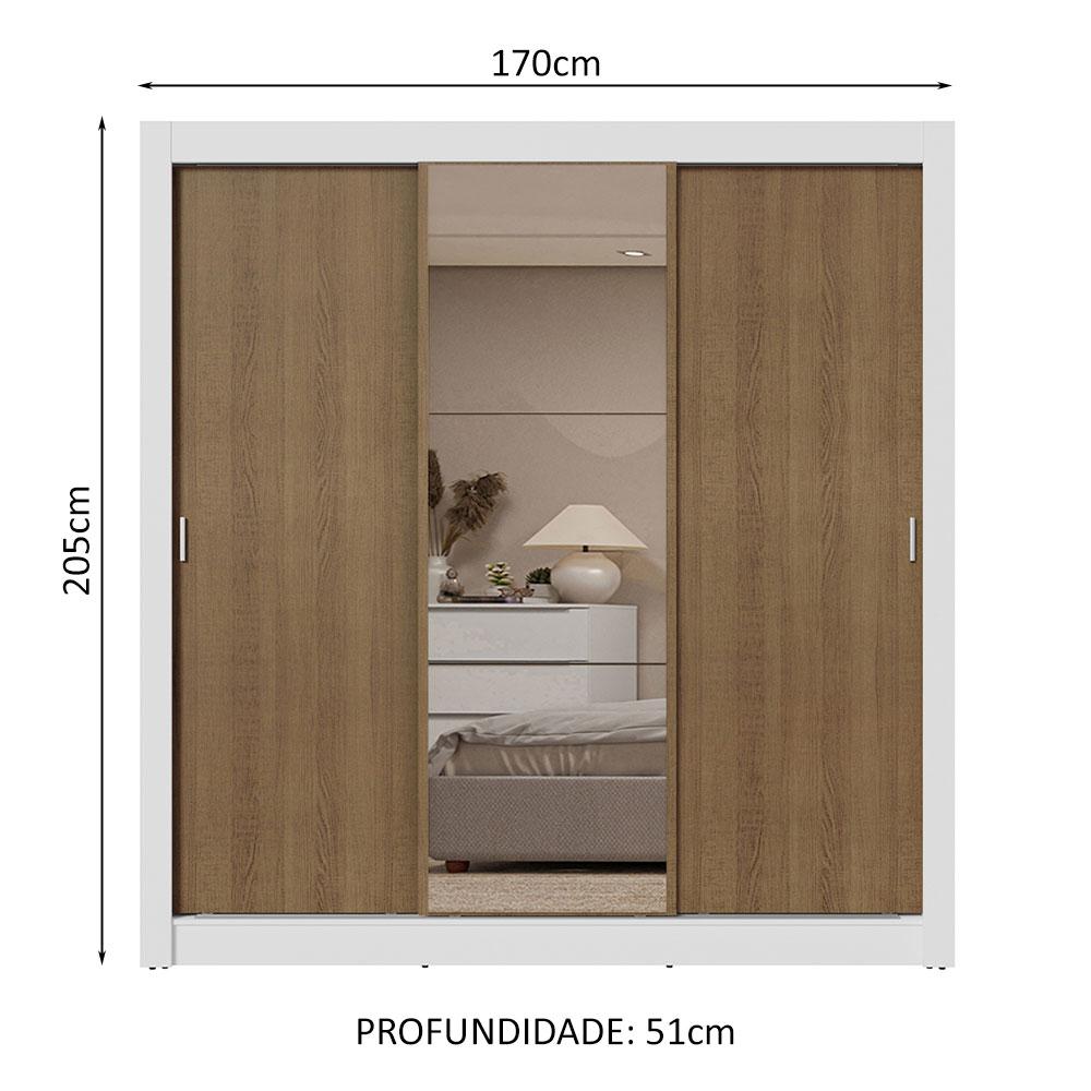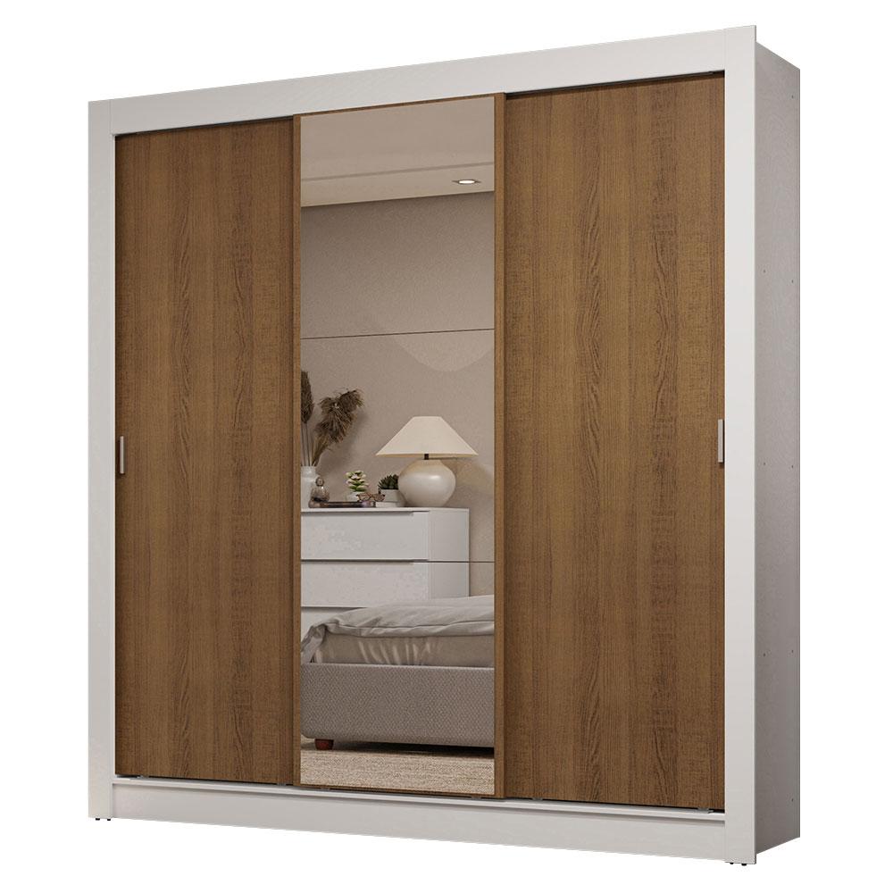 Guarda-Roupa Casal 3 Portas de Correr com Espelho 2 Gavetas Branco/Rustic Sublime Madesa