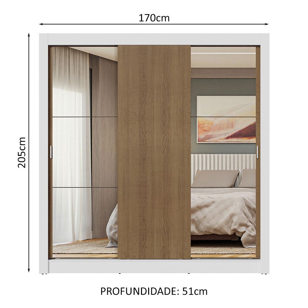 Guarda-Roupa Casal 3 Portas de Correr com Espelhos Branco/Rustic Nobre Madesa