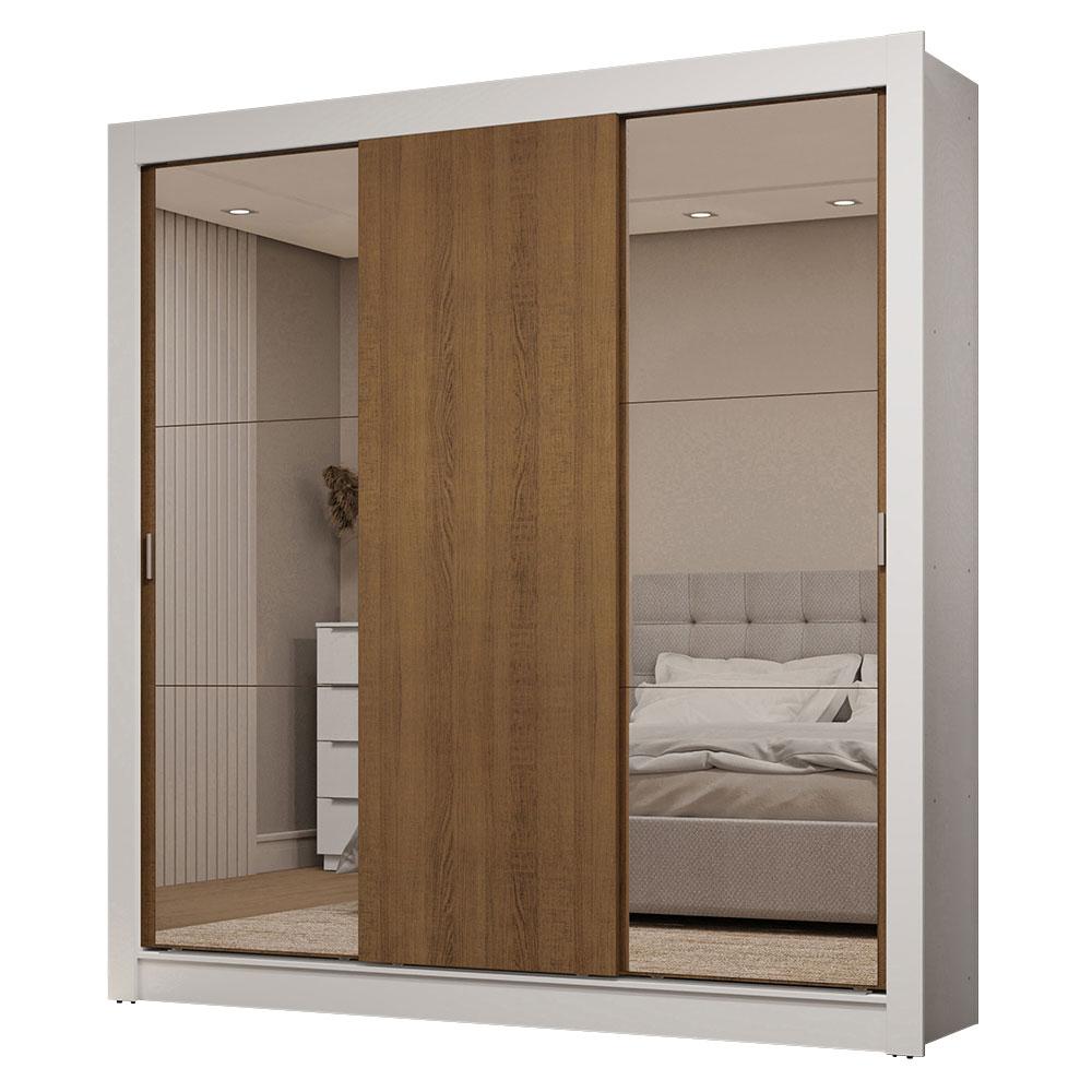 Guarda-Roupa Casal 3 Portas de Correr com Espelhos 2 Gavetas Branco/Rustic Sublime Madesa