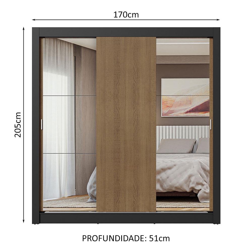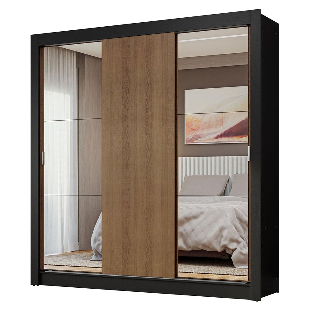 Guarda-Roupa Casal 3 Portas de Correr com Espelhos Preto/Rustic Nobre Madesa