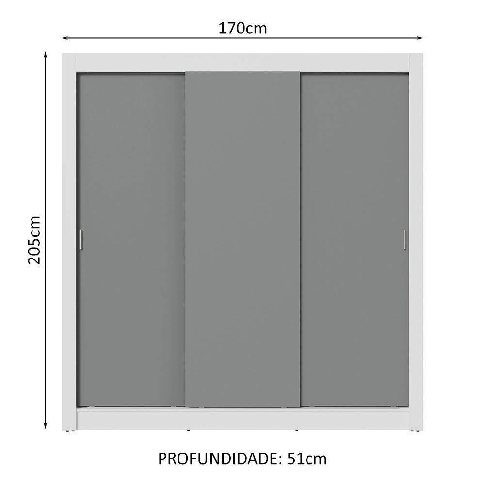 Guarda-Roupa Casal 3 Portas de Correr Branco/Cinza Sublime Plus Madesa