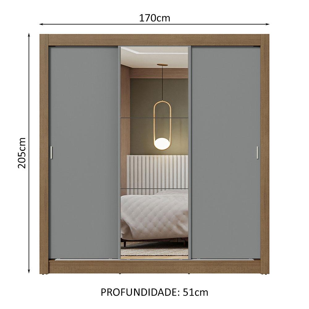 Guarda-Roupa Casal 3 Portas de Correr com Espelho Rustic/Cinza Nobre Madesa