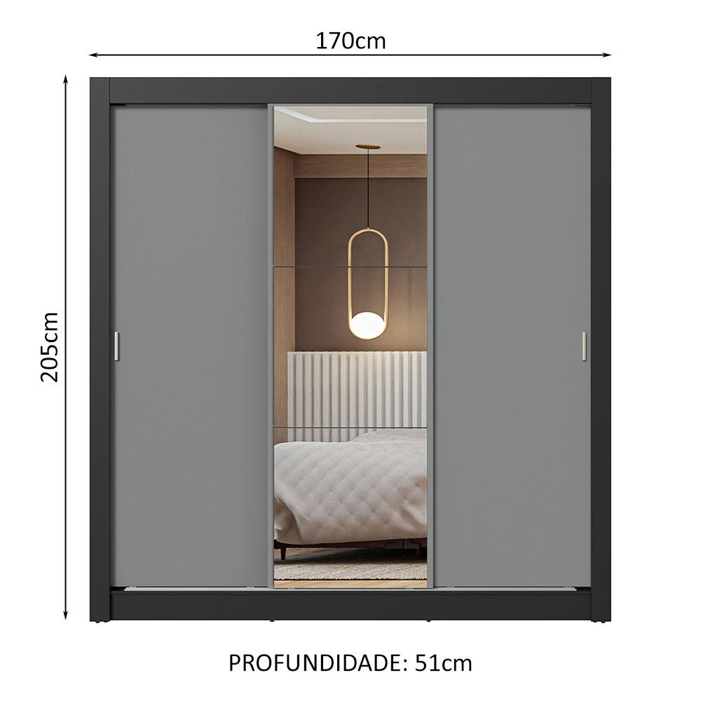Guarda-Roupa Casal 3 Portas de Correr com Espelho Preto/Cinza Nobre Madesa