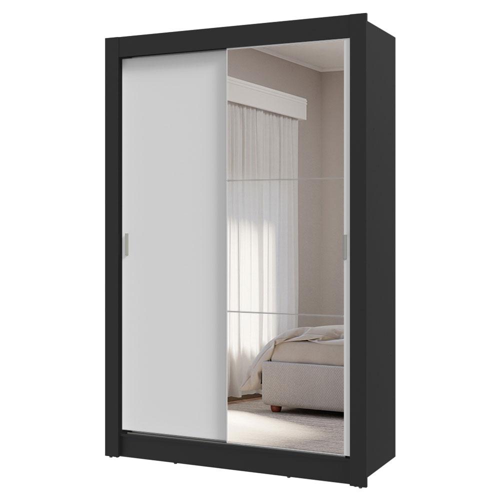 Guarda-Roupa Solteiro 2 Portas de Correr com Espelho 4 Gavetas Preto/Branco Vivare Plus Madesa