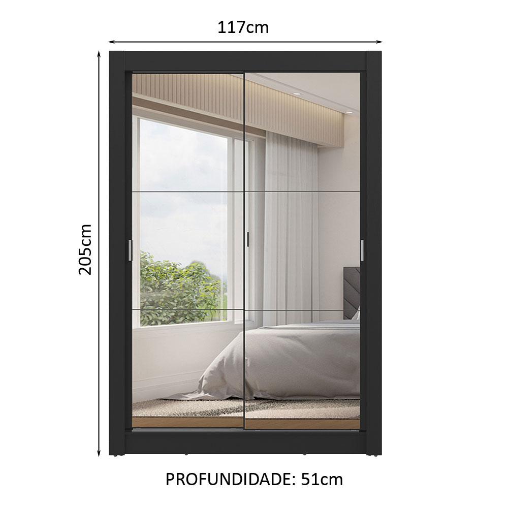 Guarda-Roupa Solteiro 2 Portas de Correr com Espelhos 2 Gavetas Preto Vivare Madesa