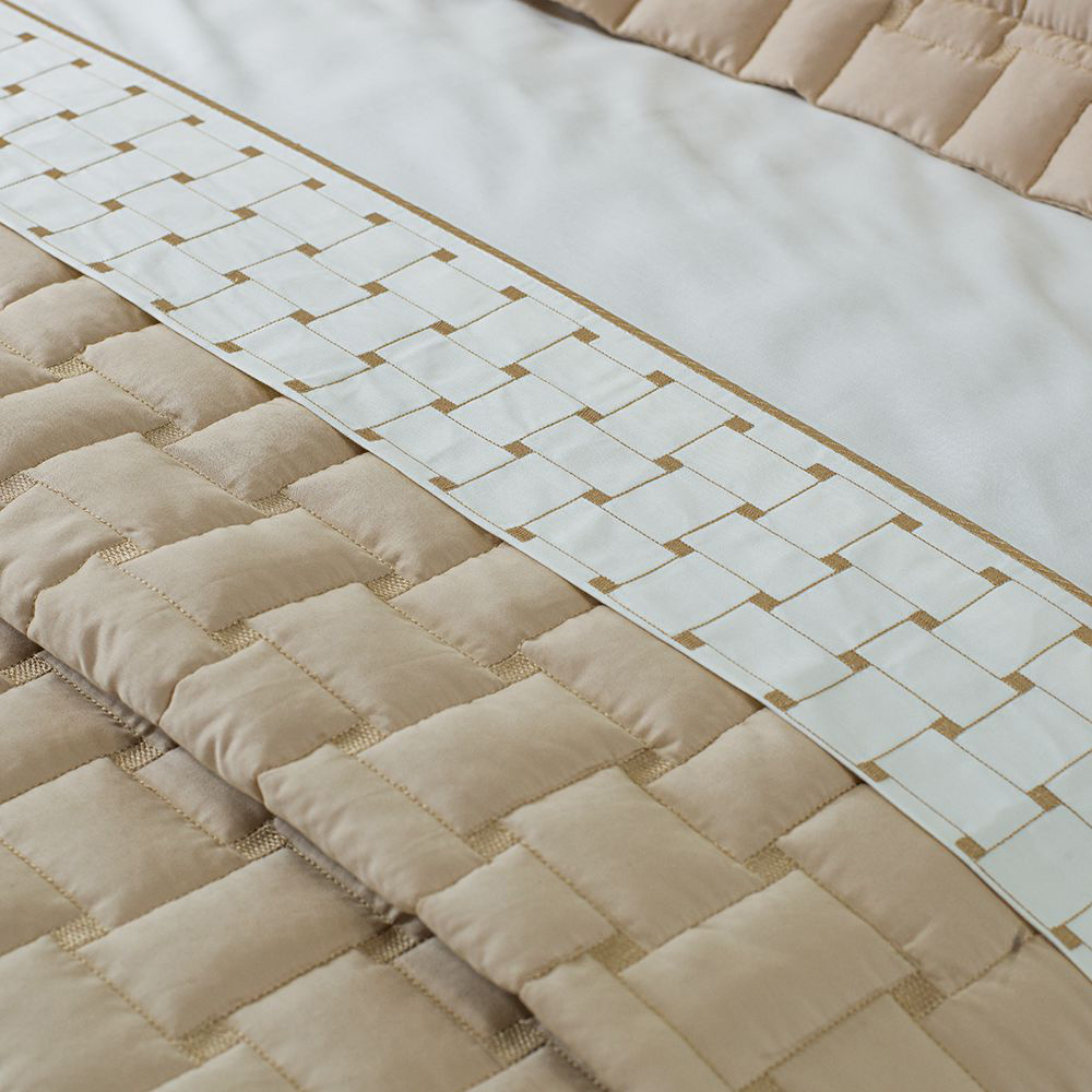 Kit Cobre Leito Colcha Garland Super King 100% Algodão 400 Fios Acetinado Bordado 5 Peças - Bege